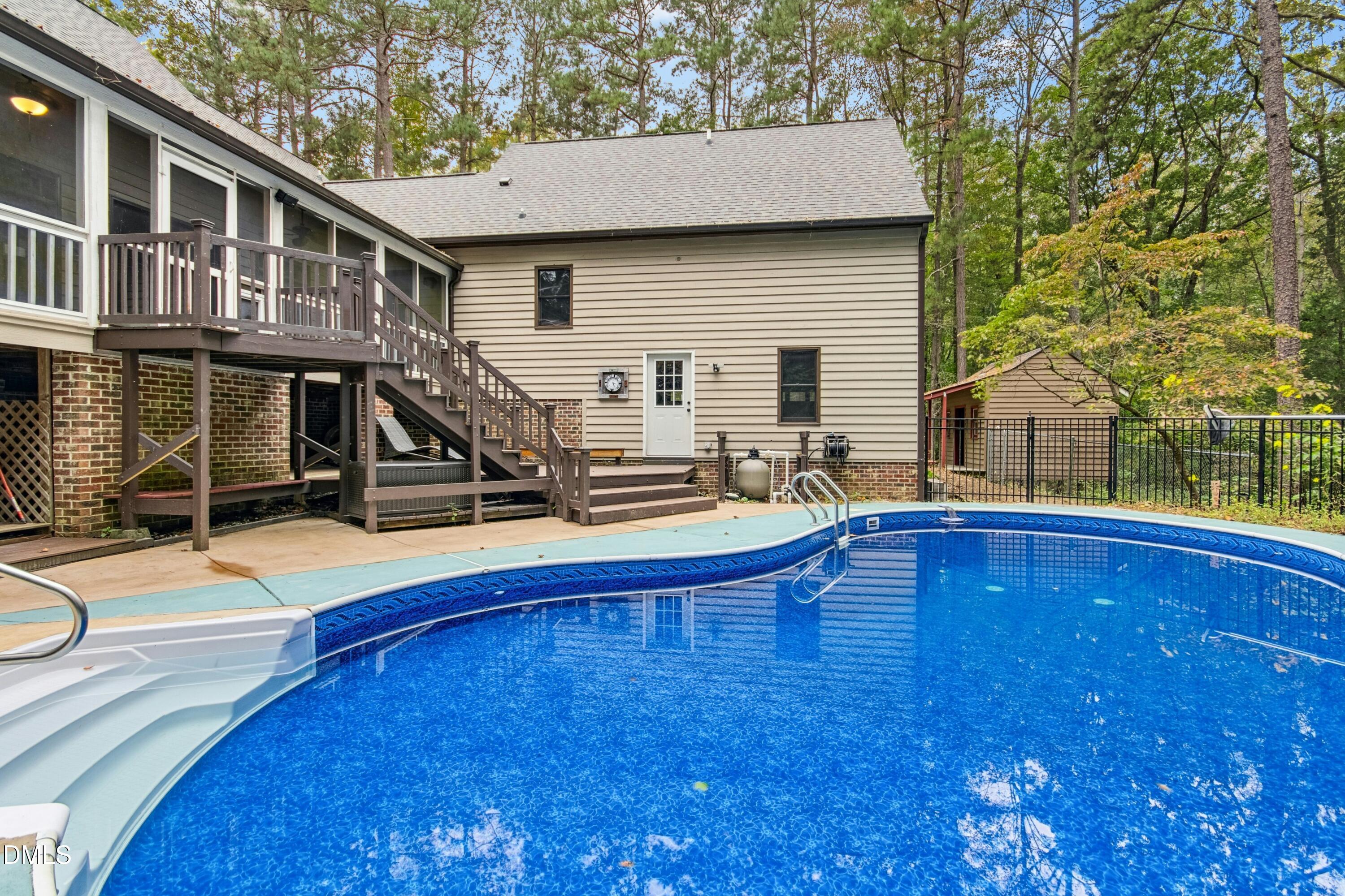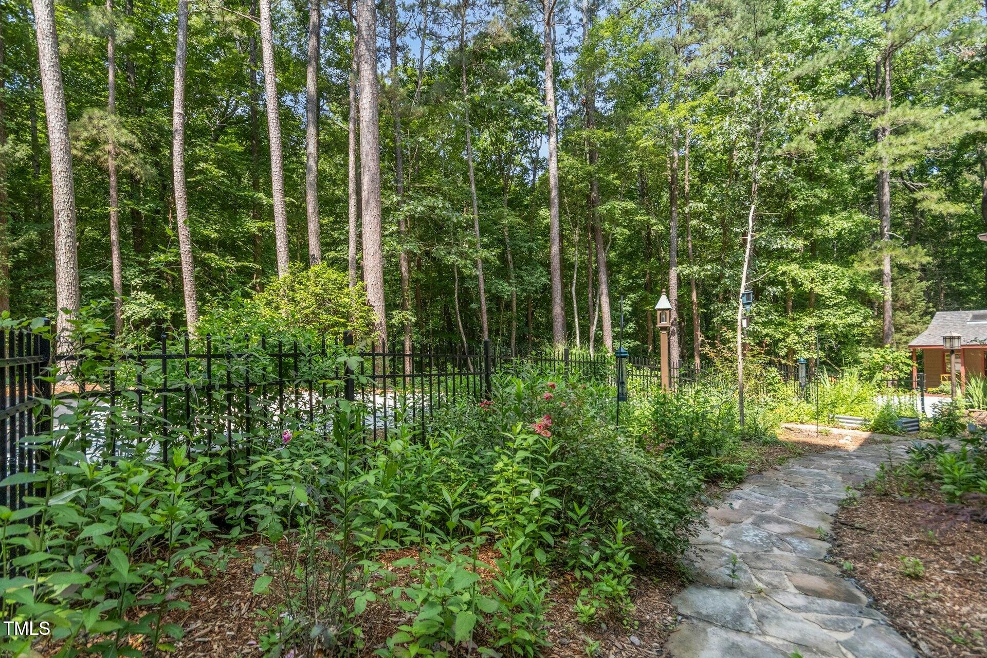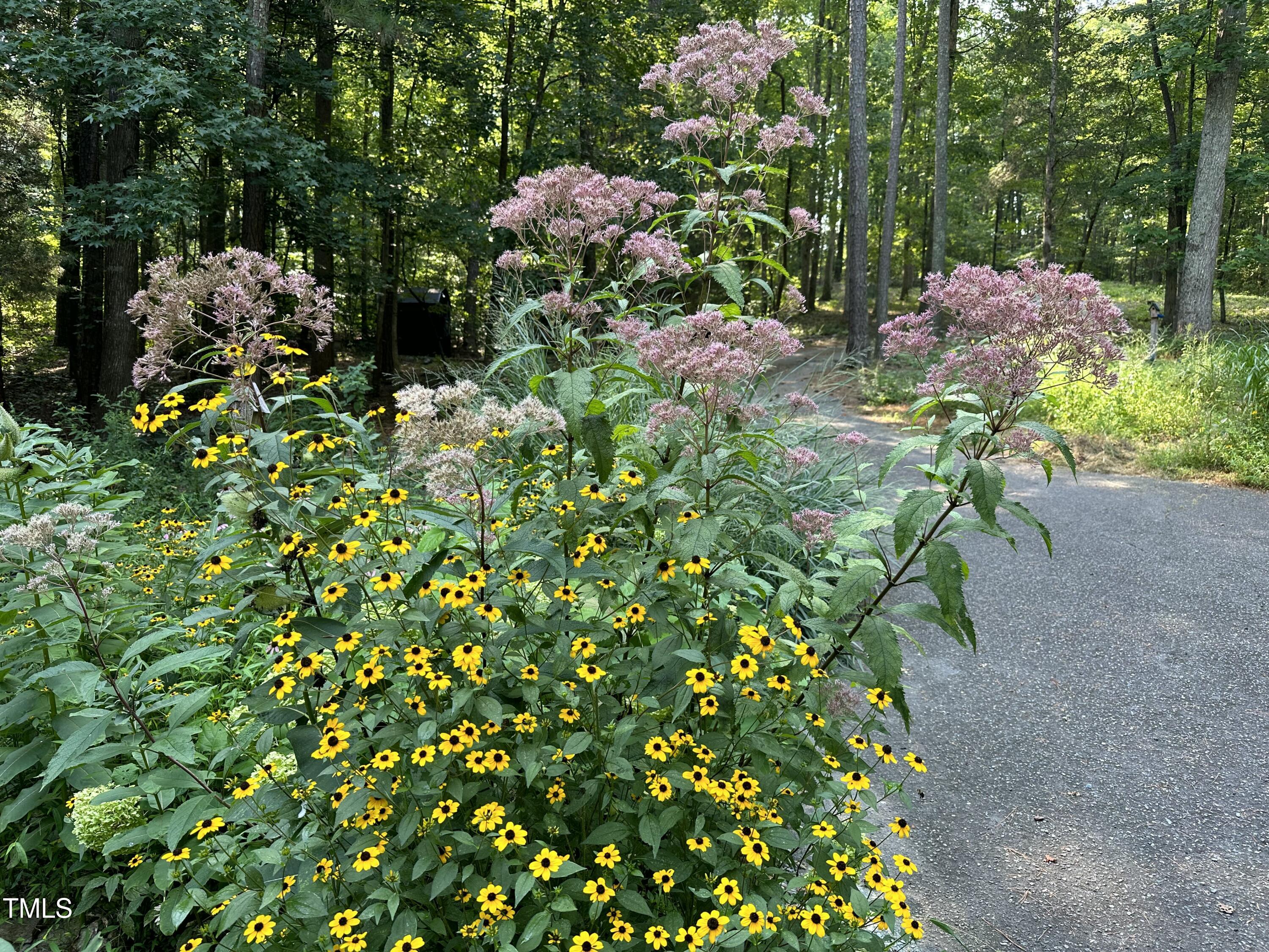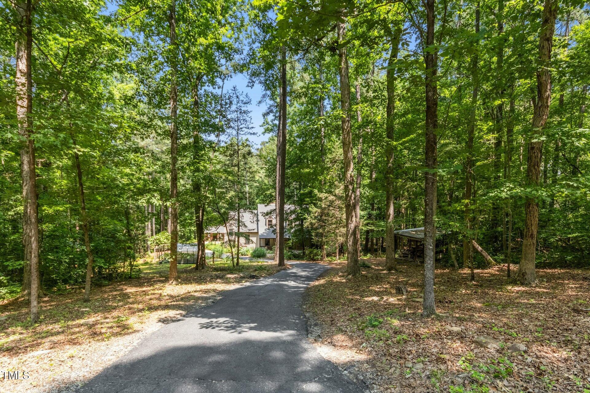 Tucked at the end of a meandering gravel lane, this custom wood home sits gracefully on nearly four pristine acres--a serene retreat between Chapel Hill and Pittsboro where nature and comfort coexist beautifully. As Fall unfolds, imagine cozy mornings on your screened porch, surrounded by the gentle hush of the woods and the glow of morning light filtering through the trees. Come Spring and Summer, your days will unfold by the gorgeous new Topaz-blue inground pool--the perfect spot to float your cares away, entertain friends, or simply bask in the sun surrounded by daylilies and lush woodland views. Step inside and you'll feel the thoughtful craftsmanship everywhere--rich hardwood floors, elegant dental crown molding, and architectural arches that give every space a sense of quiet sophistication. The heart of the home features an inviting living room with an elegant fireplace and oversized windows framing your private butterfly garden views. The kitchen is a cook's dream with a large working island, quartz counters, and premium stainless appliances including LG double convection ovens and a 5-burner cooktop. A built-in desk makes managing life's details easy, while the adjacent family room--with its floor-to-ceiling brick fireplace and French doors to the screened porch--sets the stage for both grand gatherings and peaceful evenings. Your main-floor primary suite is a true retreat, with French door access to the screened porch and a stunning brand new spa-inspired bath featuring a soaking tub, separate shower, and generous walk-in closet. Upstairs, you'll find two additional bedrooms and a spacious loft overlooking the Family room. The versatile bonus suite above the garage includes a full bath, mini kitchen, and walk-in closet--ideal for guests, a home office, or au pair quarters. Outside, explore your own botanical wonderland filled with peonies, irises, roses, hydrangeas, and vibrant pollinator gardens that attract cardinals, woodpeckers, and owls. Stroll along flagstone paths beneath a Japanese maple, tend to your raised beds, or relax on the full-length front porch while the sun filters through the trees. This isn't just a home--it's a lifestyle. Designed for those who cherish privacy, nature, and a sense of refined ease, 139 Trillium offers the rare gift of retreating into your own wooded sanctuary without giving up the convenience of town.