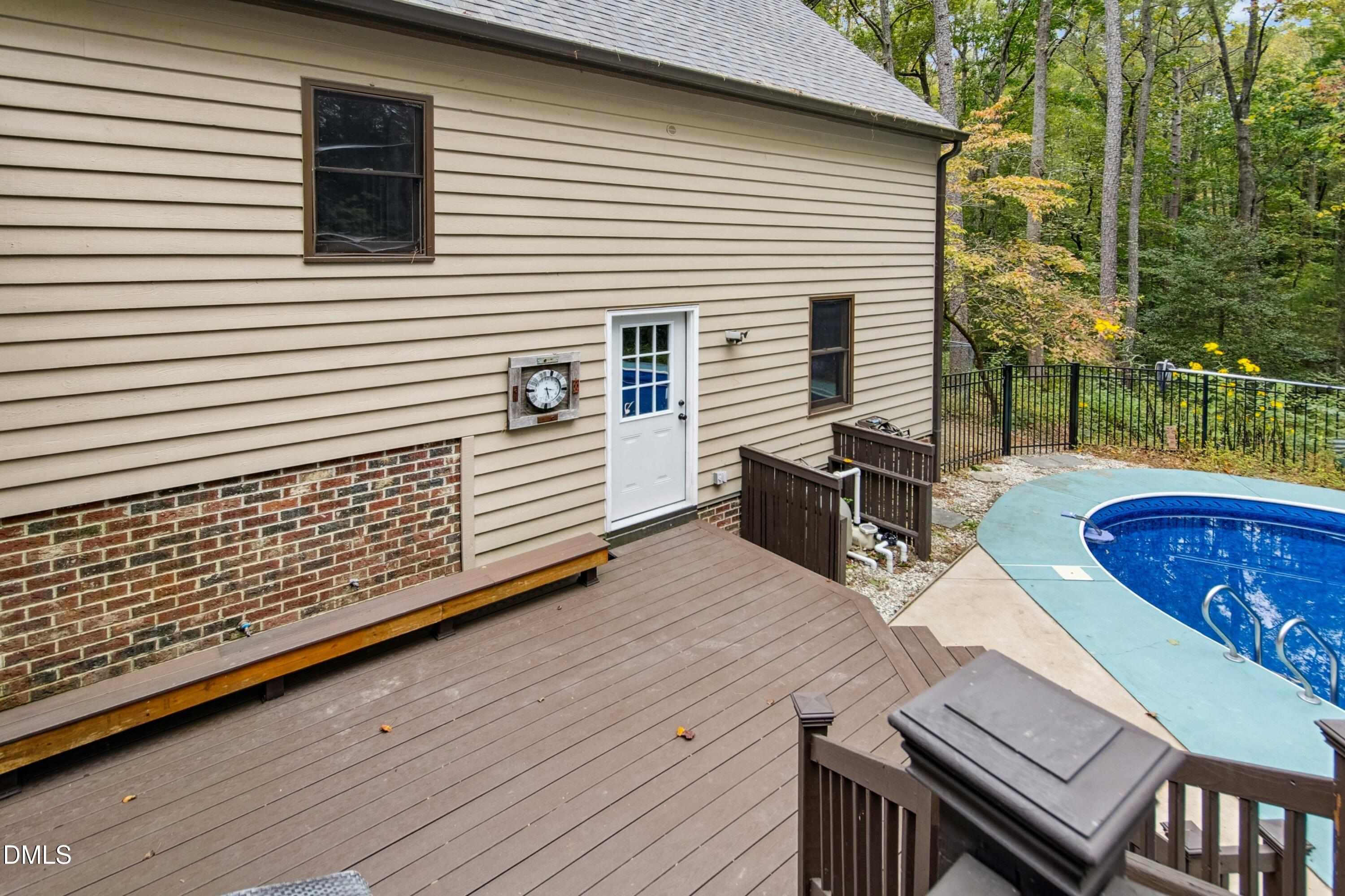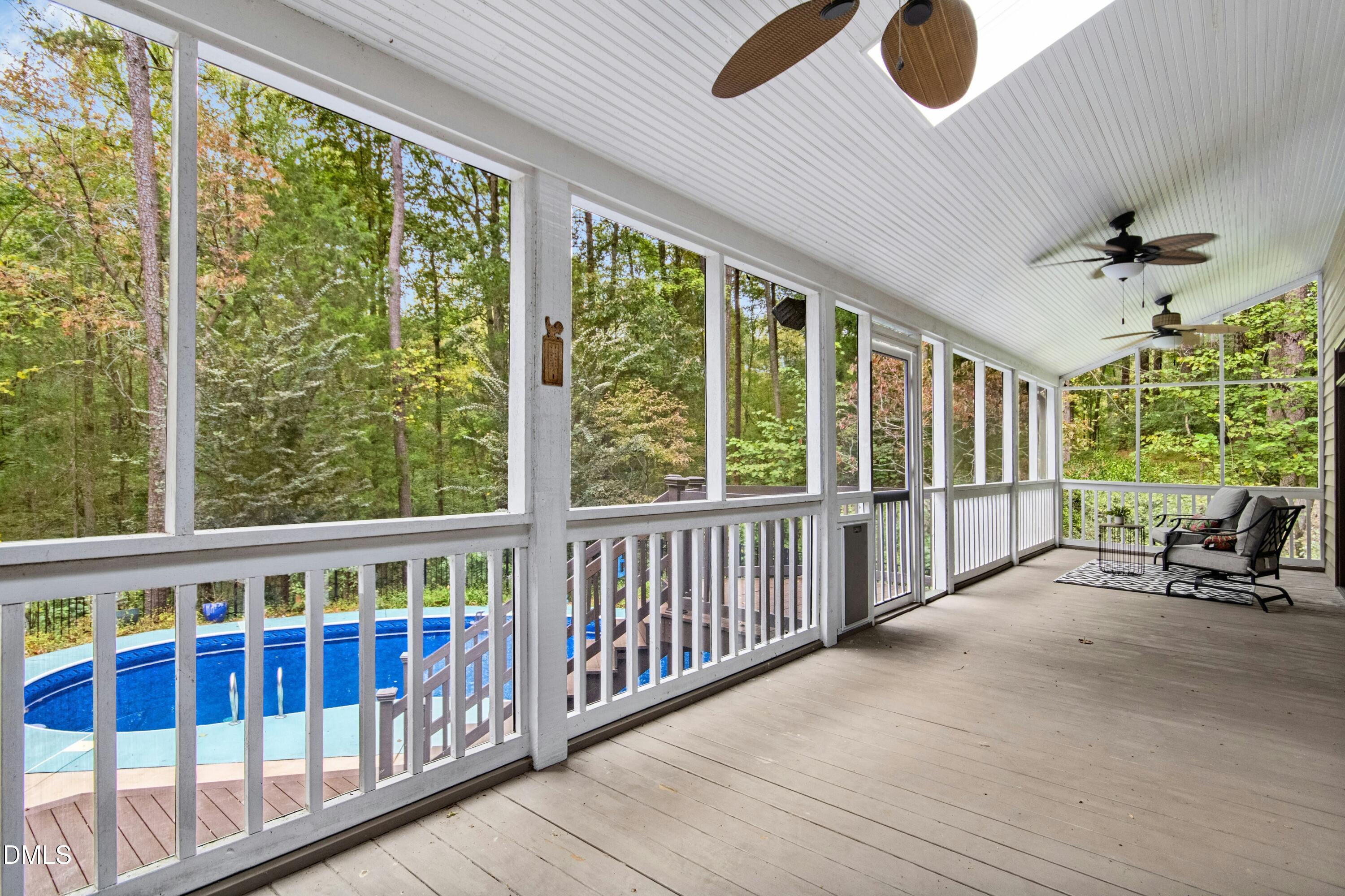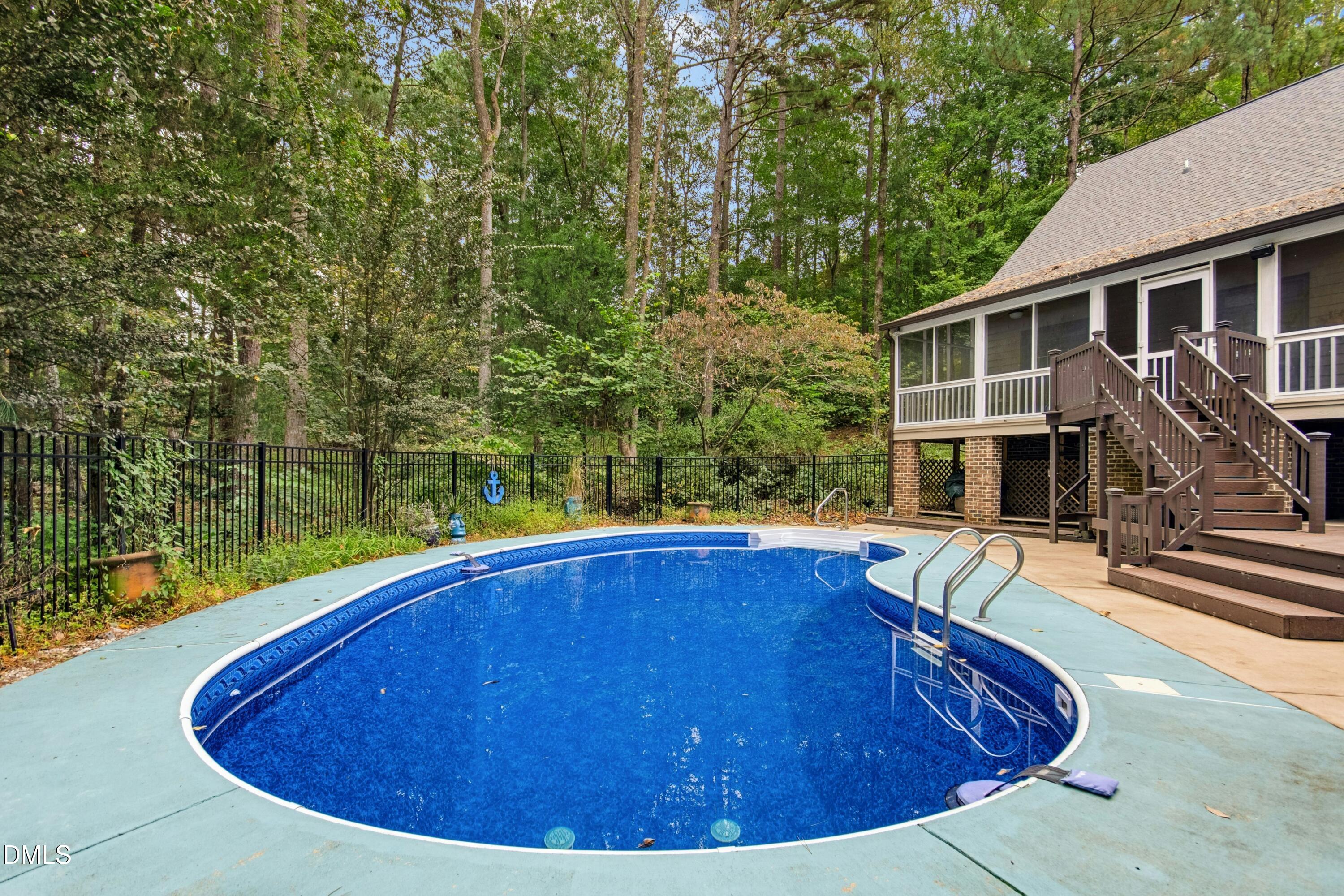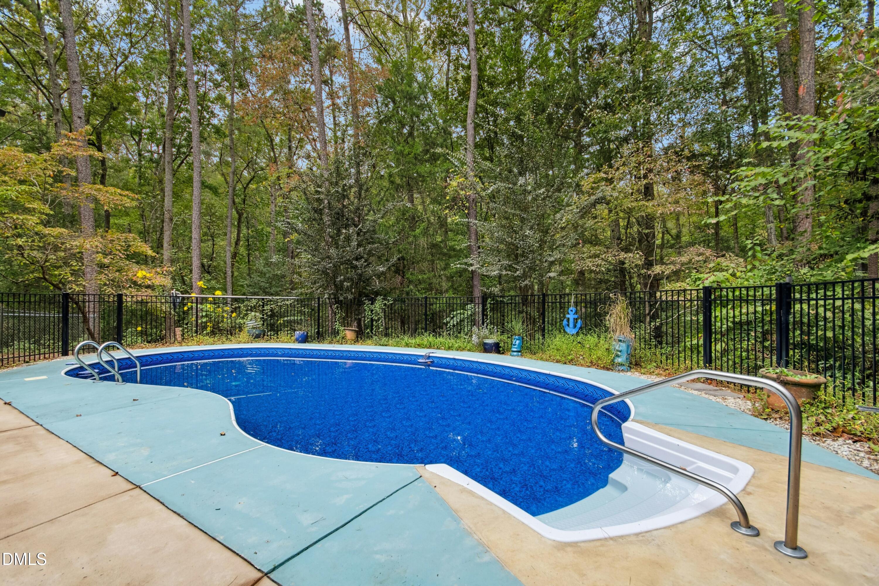 Tucked at the end of a meandering gravel lane, this custom wood home sits gracefully on nearly four pristine acres--a serene retreat between Chapel Hill and Pittsboro where nature and comfort coexist beautifully. As Fall unfolds, imagine cozy mornings on your screened porch, surrounded by the gentle hush of the woods and the glow of morning light filtering through the trees. Come Spring and Summer, your days will unfold by the gorgeous new Topaz-blue inground pool--the perfect spot to float your cares away, entertain friends, or simply bask in the sun surrounded by daylilies and lush woodland views. Step inside and you'll feel the thoughtful craftsmanship everywhere--rich hardwood floors, elegant dental crown molding, and architectural arches that give every space a sense of quiet sophistication. The heart of the home features an inviting living room with an elegant fireplace and oversized windows framing your private butterfly garden views. The kitchen is a cook's dream with a large working island, quartz counters, and premium stainless appliances including LG double convection ovens and a 5-burner cooktop. A built-in desk makes managing life's details easy, while the adjacent family room--with its floor-to-ceiling brick fireplace and French doors to the screened porch--sets the stage for both grand gatherings and peaceful evenings. Your main-floor primary suite is a true retreat, with French door access to the screened porch and a stunning brand new spa-inspired bath featuring a soaking tub, separate shower, and generous walk-in closet. Upstairs, you'll find two additional bedrooms and a spacious loft overlooking the Family room. The versatile bonus suite above the garage includes a full bath, mini kitchen, and walk-in closet--ideal for guests, a home office, or au pair quarters. Outside, explore your own botanical wonderland filled with peonies, irises, roses, hydrangeas, and vibrant pollinator gardens that attract cardinals, woodpeckers, and owls. Stroll along flagstone paths beneath a Japanese maple, tend to your raised beds, or relax on the full-length front porch while the sun filters through the trees. This isn't just a home--it's a lifestyle. Designed for those who cherish privacy, nature, and a sense of refined ease, 139 Trillium offers the rare gift of retreating into your own wooded sanctuary without giving up the convenience of town.