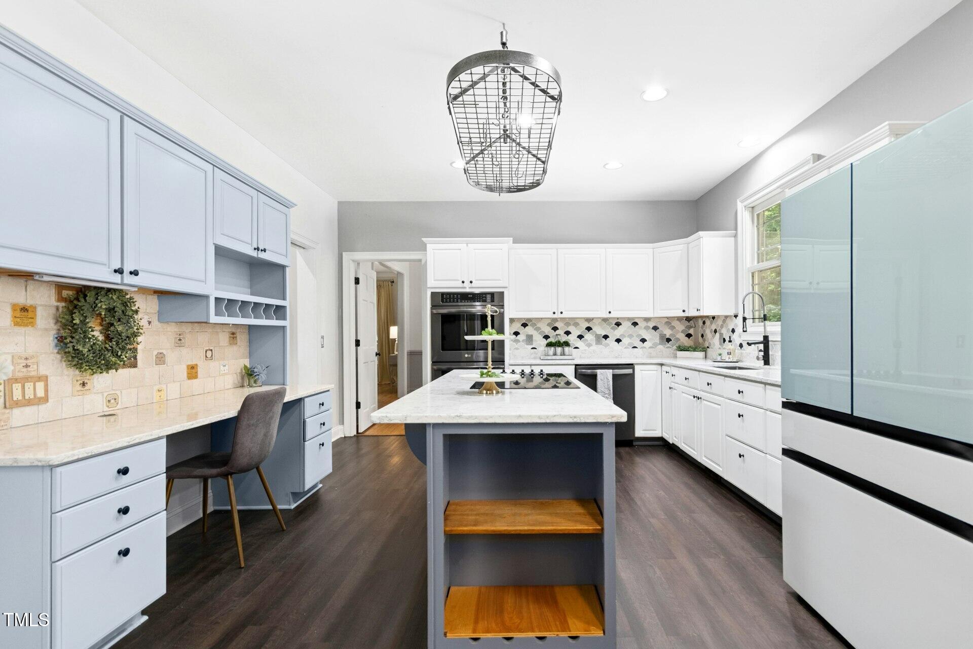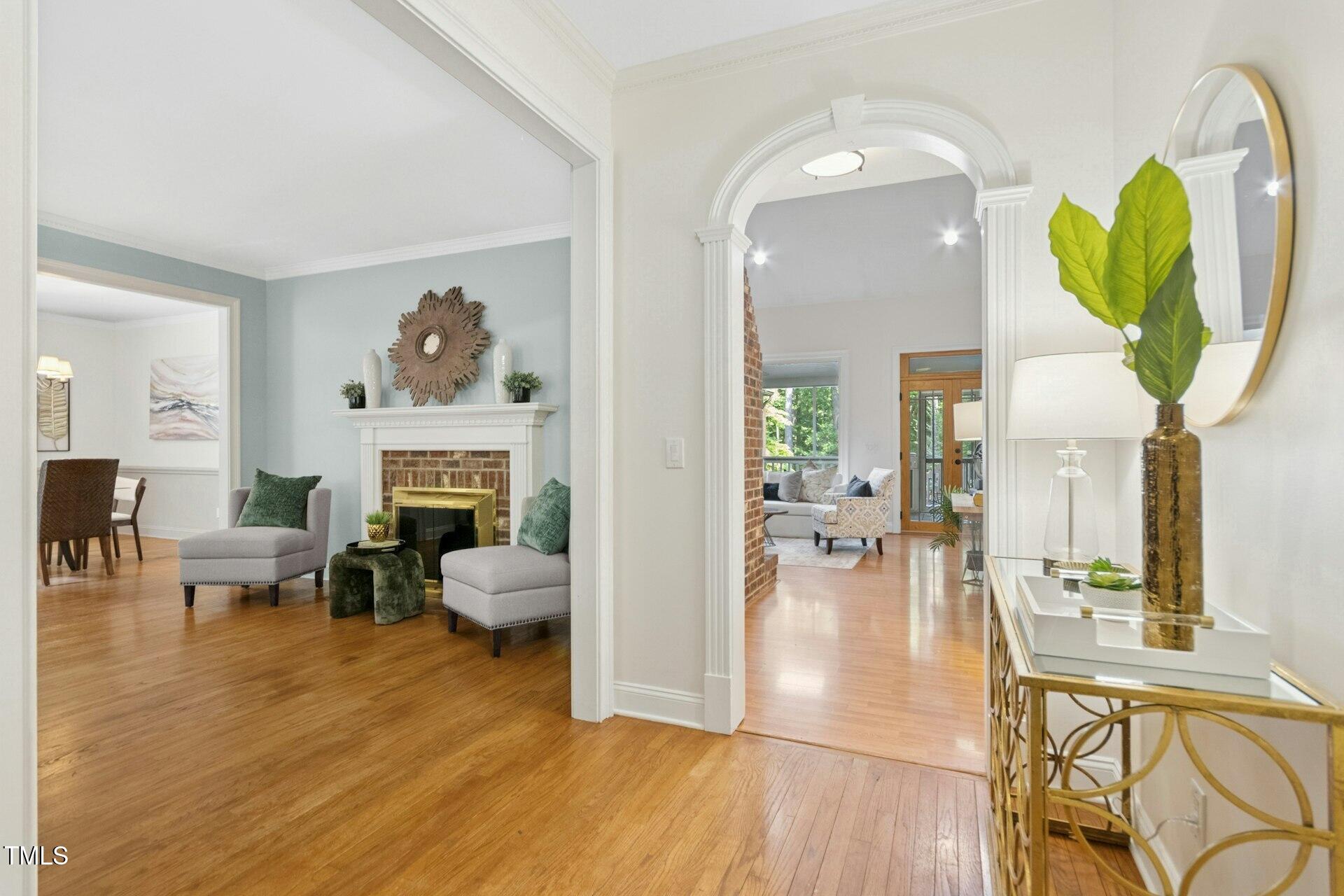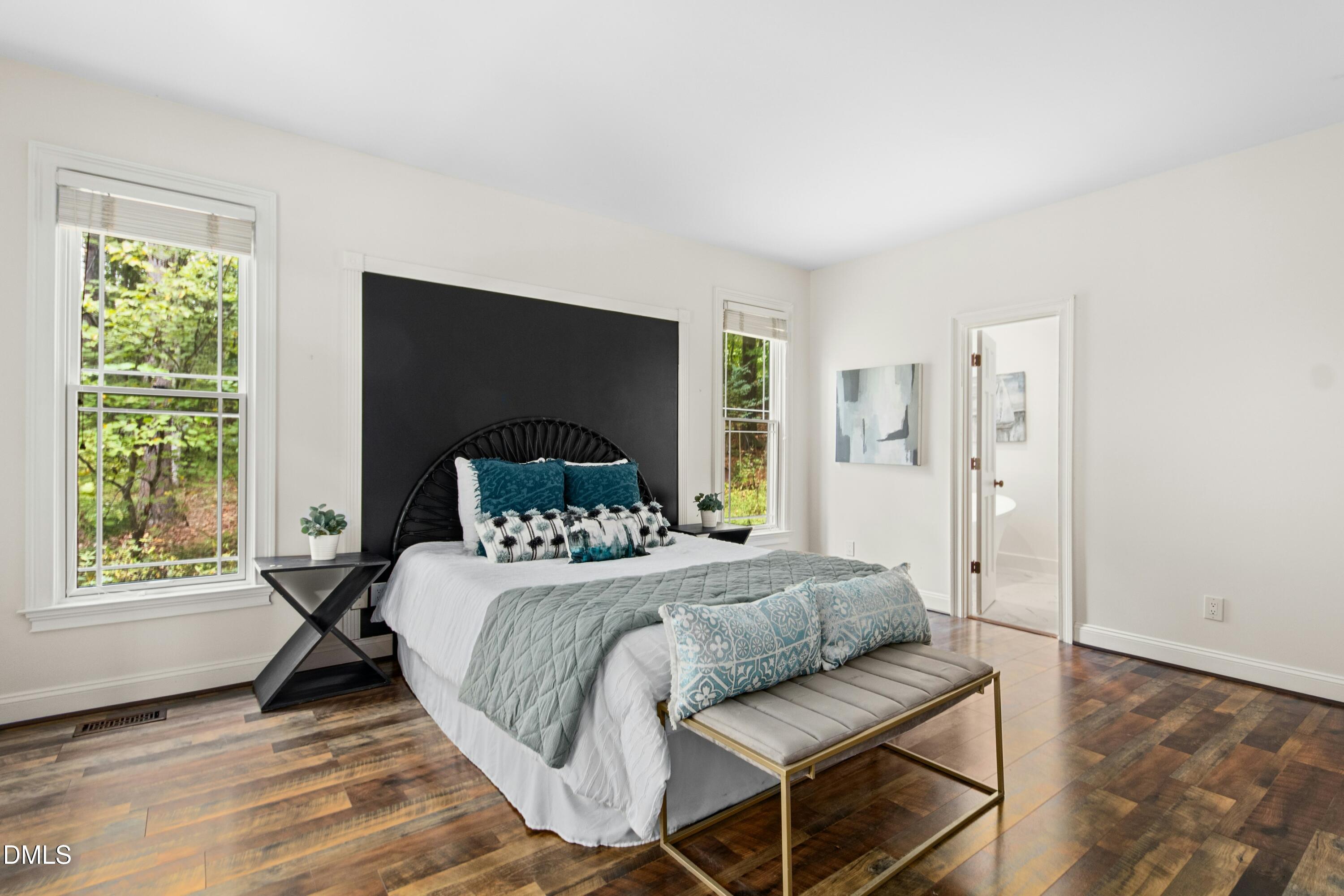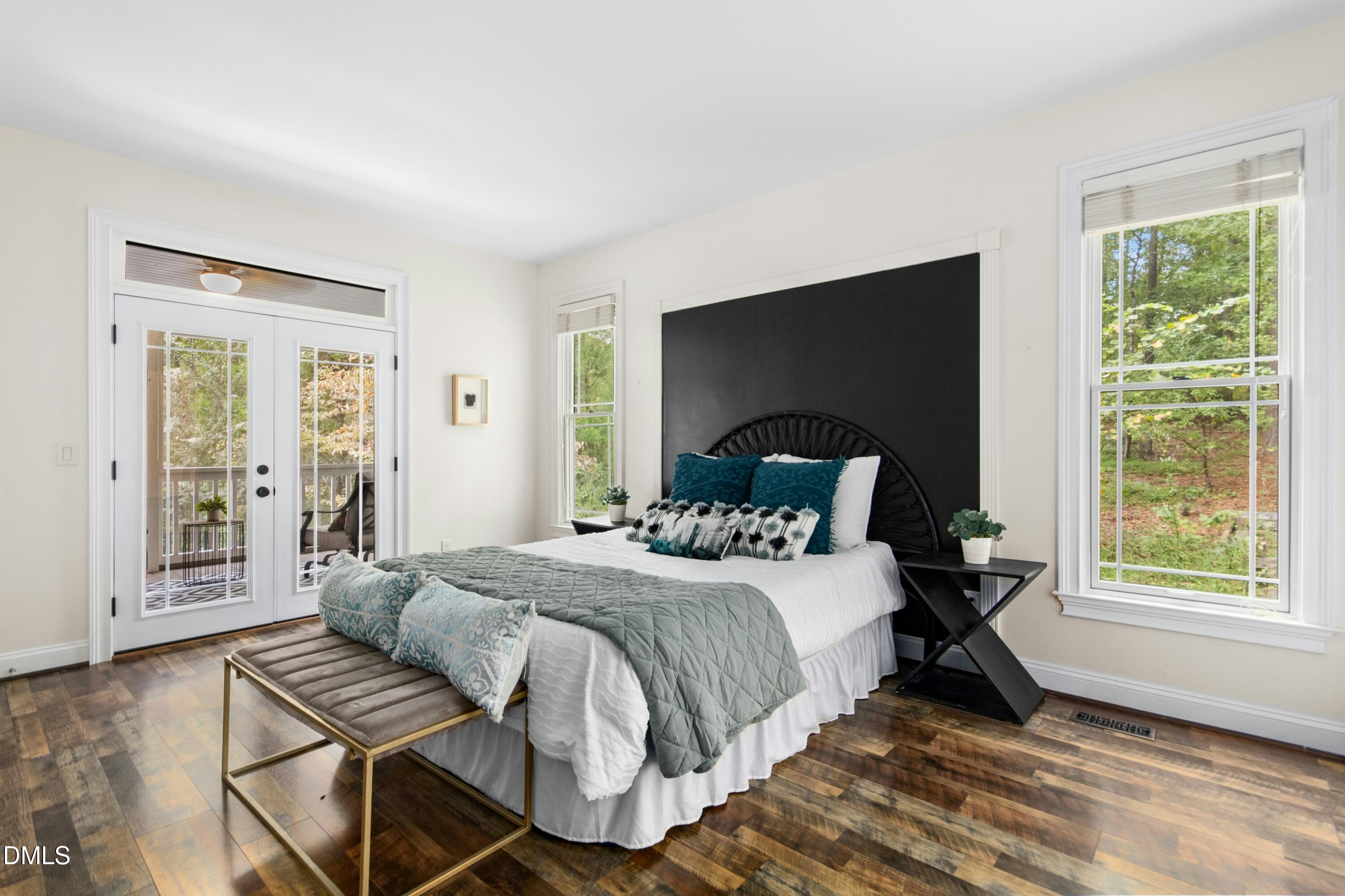 Tucked at the end of a meandering gravel lane, this custom wood home sits gracefully on nearly four pristine acres--a serene retreat between Chapel Hill and Pittsboro where nature and comfort coexist beautifully. As Fall unfolds, imagine cozy mornings on your screened porch, surrounded by the gentle hush of the woods and the glow of morning light filtering through the trees. Come Spring and Summer, your days will unfold by the gorgeous new Topaz-blue inground pool--the perfect spot to float your cares away, entertain friends, or simply bask in the sun surrounded by daylilies and lush woodland views. Step inside and you'll feel the thoughtful craftsmanship everywhere--rich hardwood floors, elegant dental crown molding, and architectural arches that give every space a sense of quiet sophistication. The heart of the home features an inviting living room with an elegant fireplace and oversized windows framing your private butterfly garden views. The kitchen is a cook's dream with a large working island, quartz counters, and premium stainless appliances including LG double convection ovens and a 5-burner cooktop. A built-in desk makes managing life's details easy, while the adjacent family room--with its floor-to-ceiling brick fireplace and French doors to the screened porch--sets the stage for both grand gatherings and peaceful evenings. Your main-floor primary suite is a true retreat, with French door access to the screened porch and a stunning brand new spa-inspired bath featuring a soaking tub, separate shower, and generous walk-in closet. Upstairs, you'll find two additional bedrooms and a spacious loft overlooking the Family room. The versatile bonus suite above the garage includes a full bath, mini kitchen, and walk-in closet--ideal for guests, a home office, or au pair quarters. Outside, explore your own botanical wonderland filled with peonies, irises, roses, hydrangeas, and vibrant pollinator gardens that attract cardinals, woodpeckers, and owls. Stroll along flagstone paths beneath a Japanese maple, tend to your raised beds, or relax on the full-length front porch while the sun filters through the trees. This isn't just a home--it's a lifestyle. Designed for those who cherish privacy, nature, and a sense of refined ease, 139 Trillium offers the rare gift of retreating into your own wooded sanctuary without giving up the convenience of town.