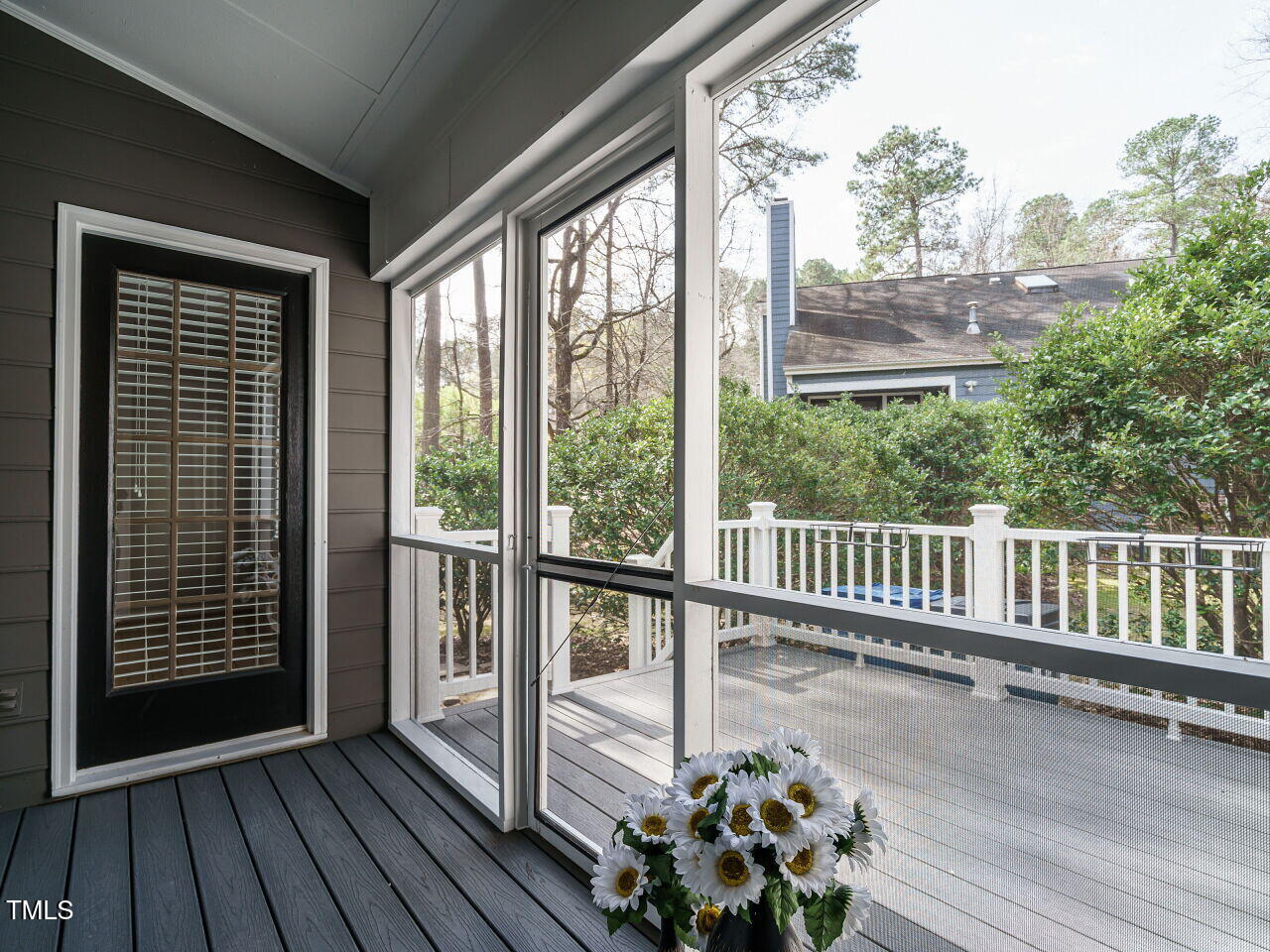 Quintessential Woodcroft! Welcome home to this ONE level, END-unit townhome tucked within the super convenient Seven Oaks neighborhood, in established Woodcroft community! This townhome has the feel of a single family home along with the privacy that is hard to find in townhome living. Enter through the front porch to see the beautiful HARDWOOD flooring the majority of the property. With THREE bedrooms, this townhome is set up for easy living and is filled with bright light and great energy! Enjoy your time on your SCREEN PORCH, that overlooks the TREX deck & private backyard, too! All appliances will convey and the HOA will be replacing the roof, March 2025! Woodcroft offers miles of walking trails, convenient shopping and dining options, too! Easy access to Downtown Durham, Duke & UNC!