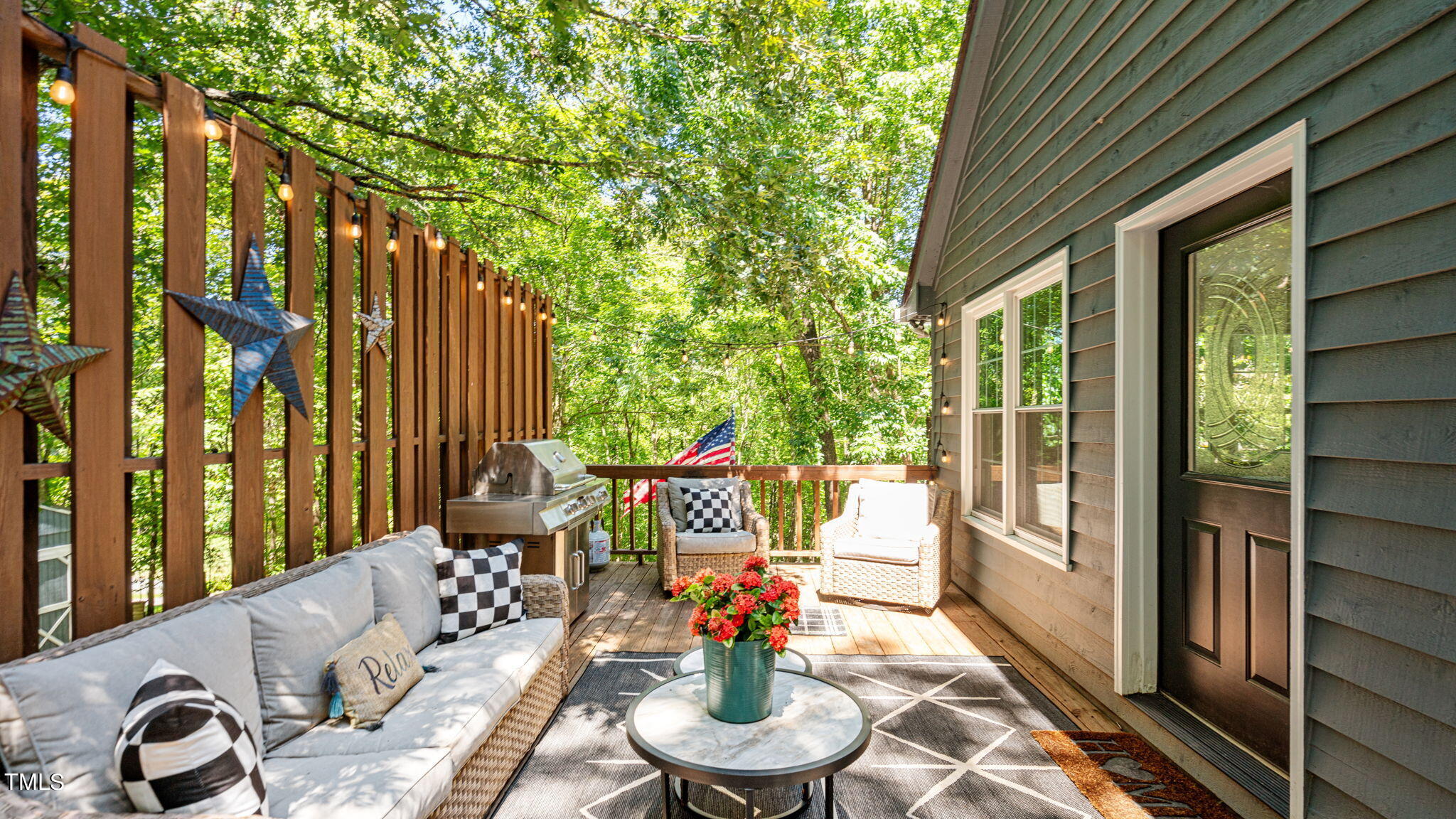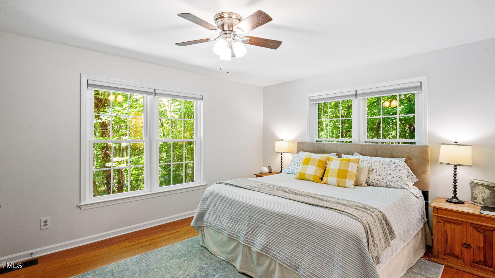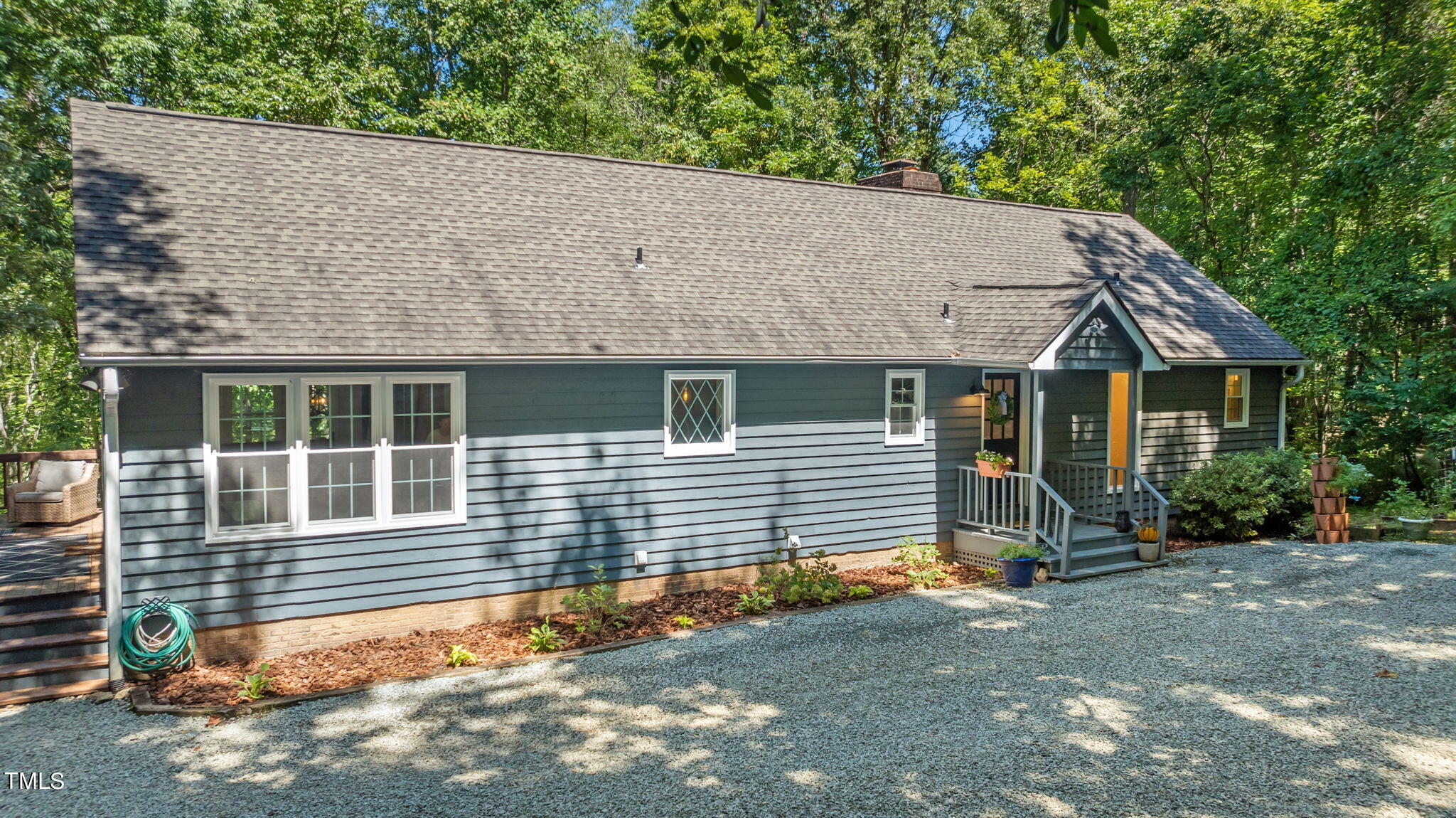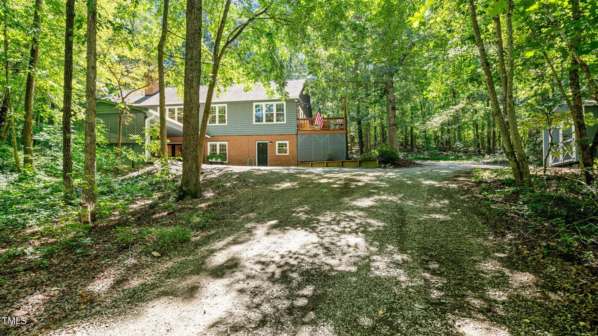 Discover your perfect escape in this mountain-inspired retreat, nestled on 2+ acres of serenity on a quiet cul-de-sac. Minutes from Carrboro and UNC, in the Chapel Hill High School district. Surrounded by a natural canopy of trees that provide shade and cooling, this property offers comfort during the summer while immersing you in nature's beauty. Designed to maximize privacy, abundant windows that frame natural views. With beautiful hardwood floors, the light-filled interiors create a warm and inviting atmosphere. Built-ins in cozy corners add both functionality and charm, providing spaces that feel timeless and comfortable. Main level is ideal for single-level living, while the high ceilinged finished lower level offers flexibility for multi-generational, extended living or an income-generating Airbnb rental. Enjoy endless possibilities; multi flex space, full-floored attic storage, two spacious porches, lower-level terrace, and a dedicated home office. The absence of an HOA gives you the freedom to truly make this space your own. Key Features; beautifully appointed bathrooms, updated kitchen, newer roof, windows, and HVAC. Plus LOW monthly utility bills! Perfect balance of tranquility and convenience with updates that provide peace of mind for years to come. Don't miss your chance to retreat to this nature-inspired haven!