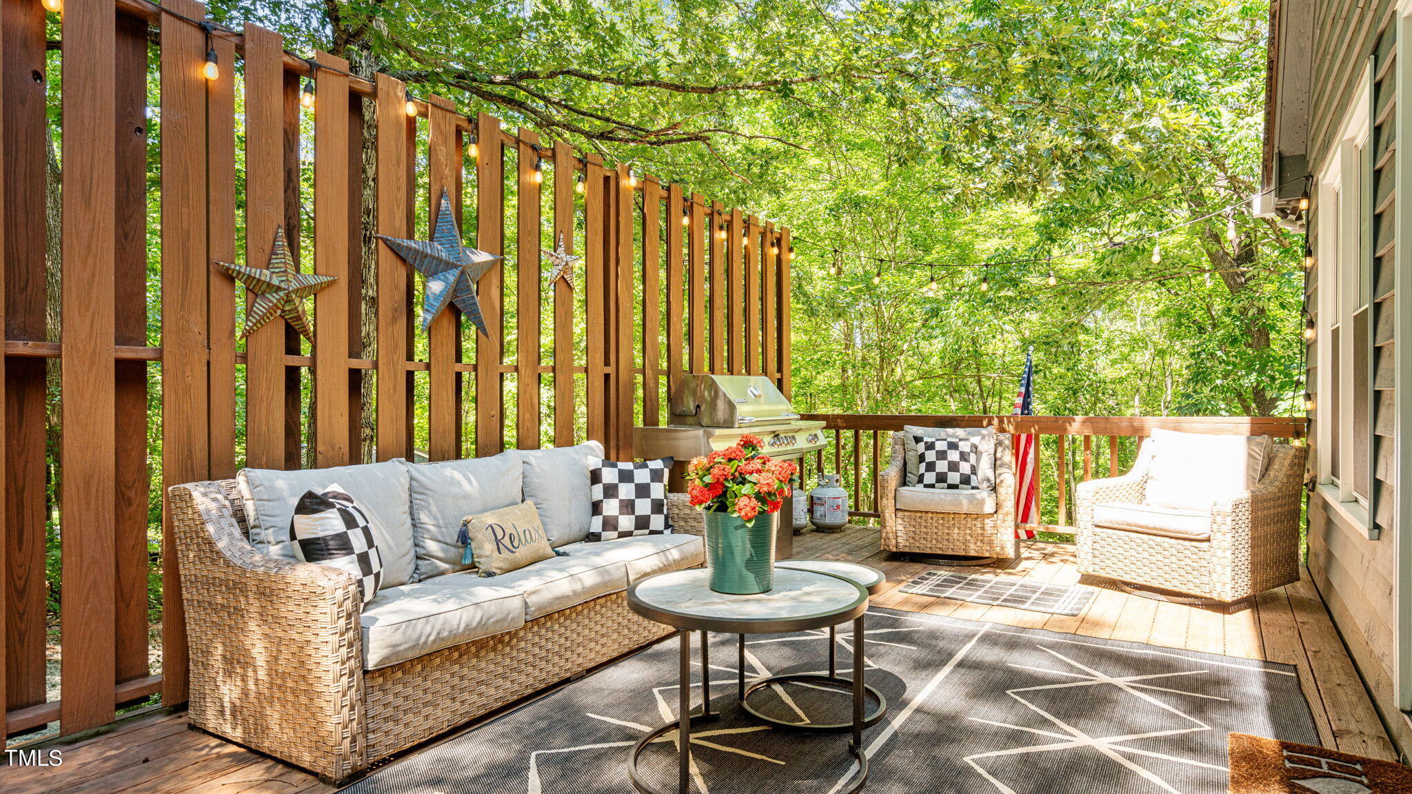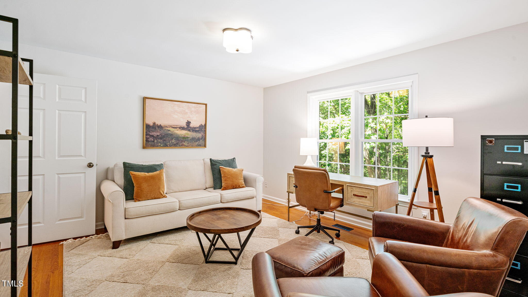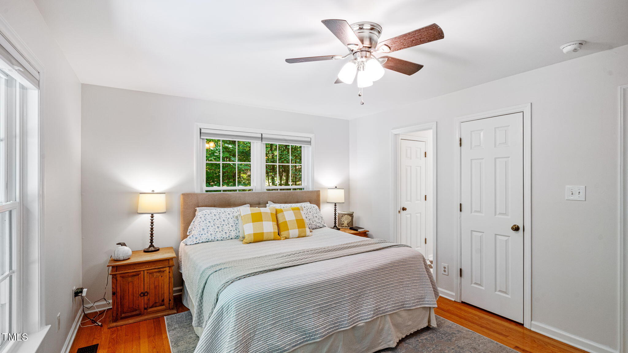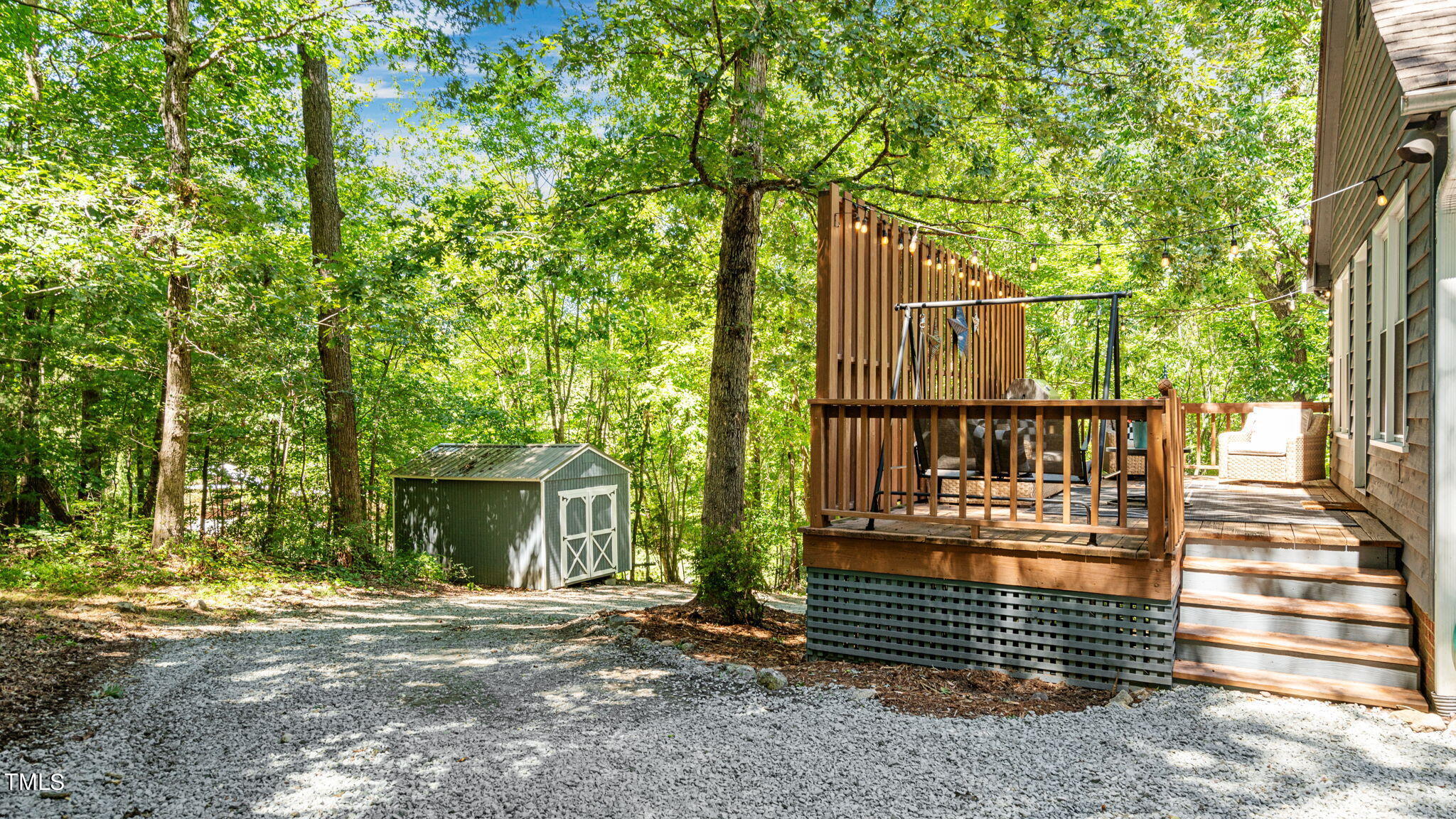 Discover your perfect escape in this mountain-inspired retreat, nestled on 2+ acres of serenity on a quiet cul-de-sac. Minutes from Carrboro and UNC, in the Chapel Hill High School district. Surrounded by a natural canopy of trees that provide shade and cooling, this property offers comfort during the summer while immersing you in nature's beauty. Designed to maximize privacy, abundant windows that frame natural views. With beautiful hardwood floors, the light-filled interiors create a warm and inviting atmosphere. Built-ins in cozy corners add both functionality and charm, providing spaces that feel timeless and comfortable. Main level is ideal for single-level living, while the high ceilinged finished lower level offers flexibility for multi-generational, extended living or an income-generating Airbnb rental. Enjoy endless possibilities; multi flex space, full-floored attic storage, two spacious porches, lower-level terrace, and a dedicated home office. The absence of an HOA gives you the freedom to truly make this space your own. Key Features; beautifully appointed bathrooms, updated kitchen, newer roof, windows, and HVAC. Plus LOW monthly utility bills! Perfect balance of tranquility and convenience with updates that provide peace of mind for years to come. Don't miss your chance to retreat to this nature-inspired haven!