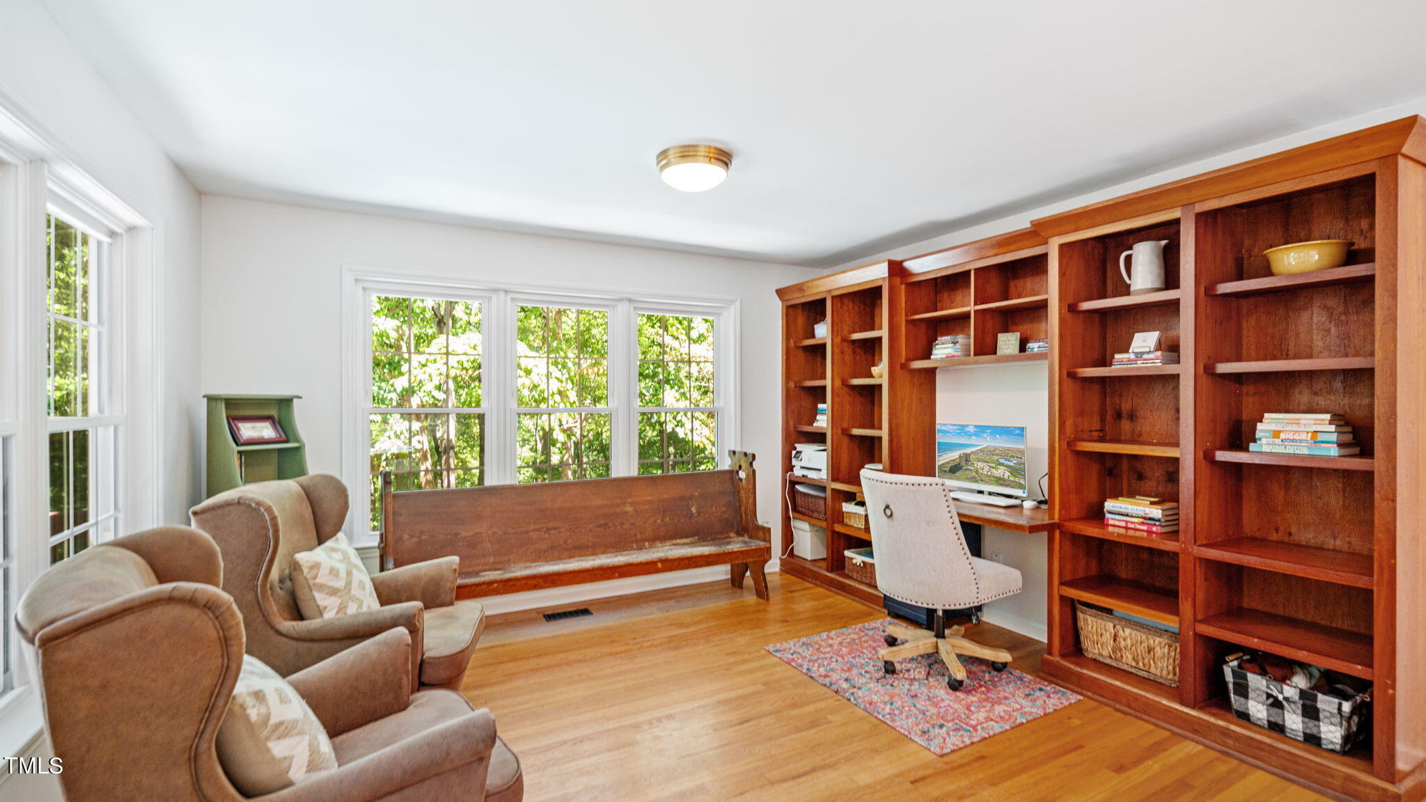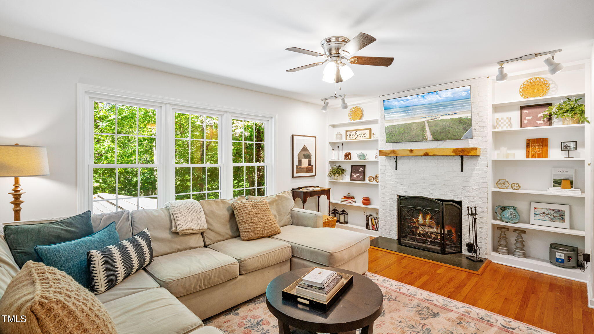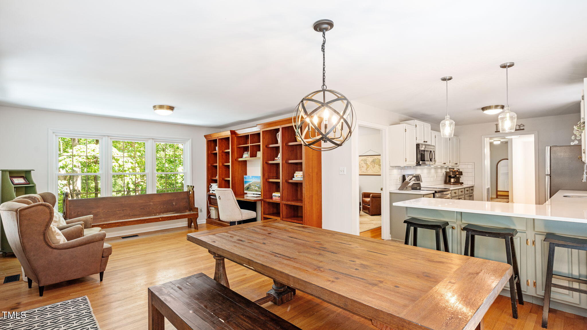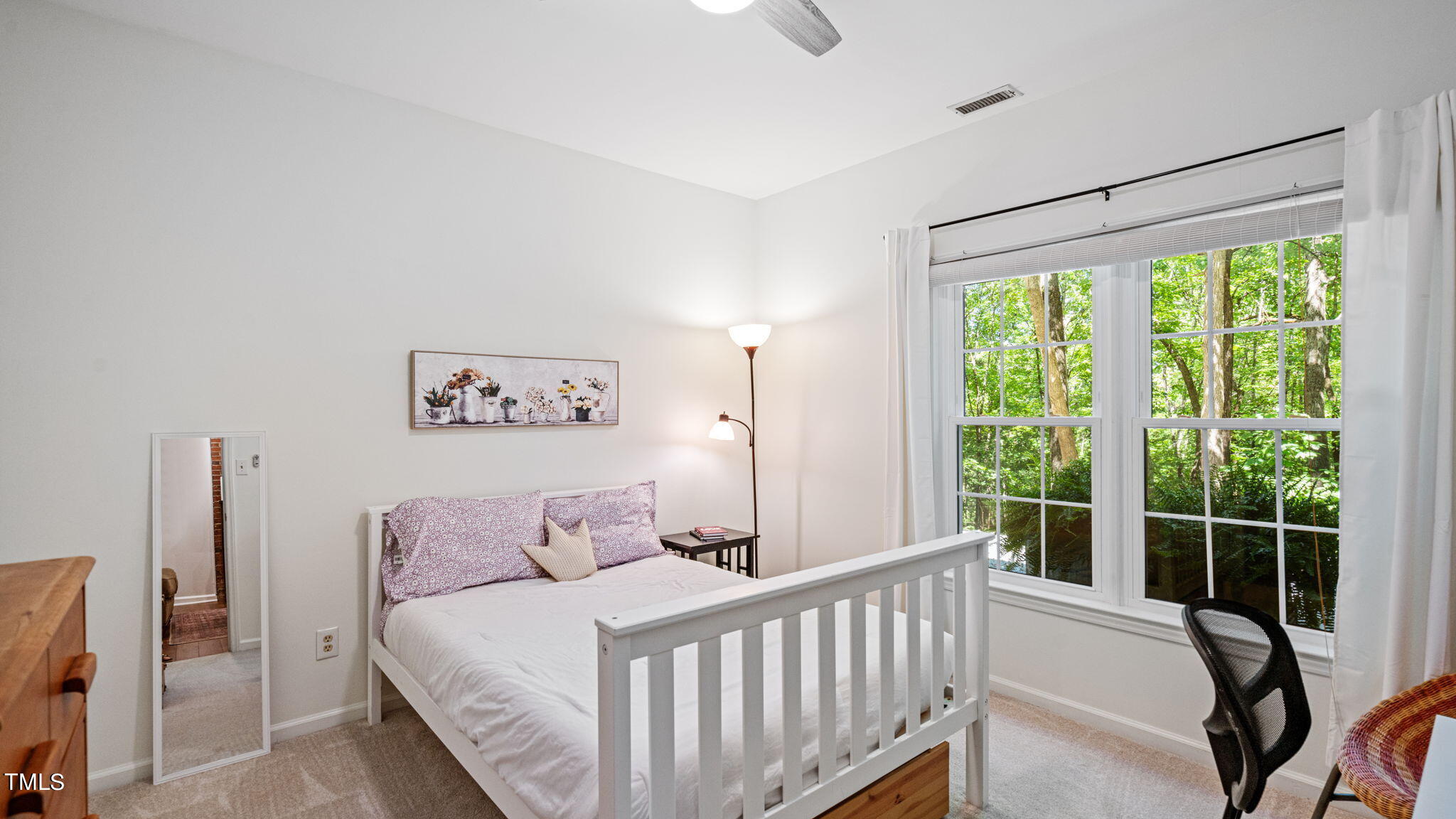 Discover your perfect escape in this mountain-inspired retreat, nestled on 2+ acres of serenity on a quiet cul-de-sac. Minutes from Carrboro and UNC, in the Chapel Hill High School district. Surrounded by a natural canopy of trees that provide shade and cooling, this property offers comfort during the summer while immersing you in nature's beauty. Designed to maximize privacy, abundant windows that frame natural views. With beautiful hardwood floors, the light-filled interiors create a warm and inviting atmosphere. Built-ins in cozy corners add both functionality and charm, providing spaces that feel timeless and comfortable. Main level is ideal for single-level living, while the high ceilinged finished lower level offers flexibility for multi-generational, extended living or an income-generating Airbnb rental. Enjoy endless possibilities; multi flex space, full-floored attic storage, two spacious porches, lower-level terrace, and a dedicated home office. The absence of an HOA gives you the freedom to truly make this space your own. Key Features; beautifully appointed bathrooms, updated kitchen, newer roof, windows, and HVAC. Plus LOW monthly utility bills! Perfect balance of tranquility and convenience with updates that provide peace of mind for years to come. Don't miss your chance to retreat to this nature-inspired haven!