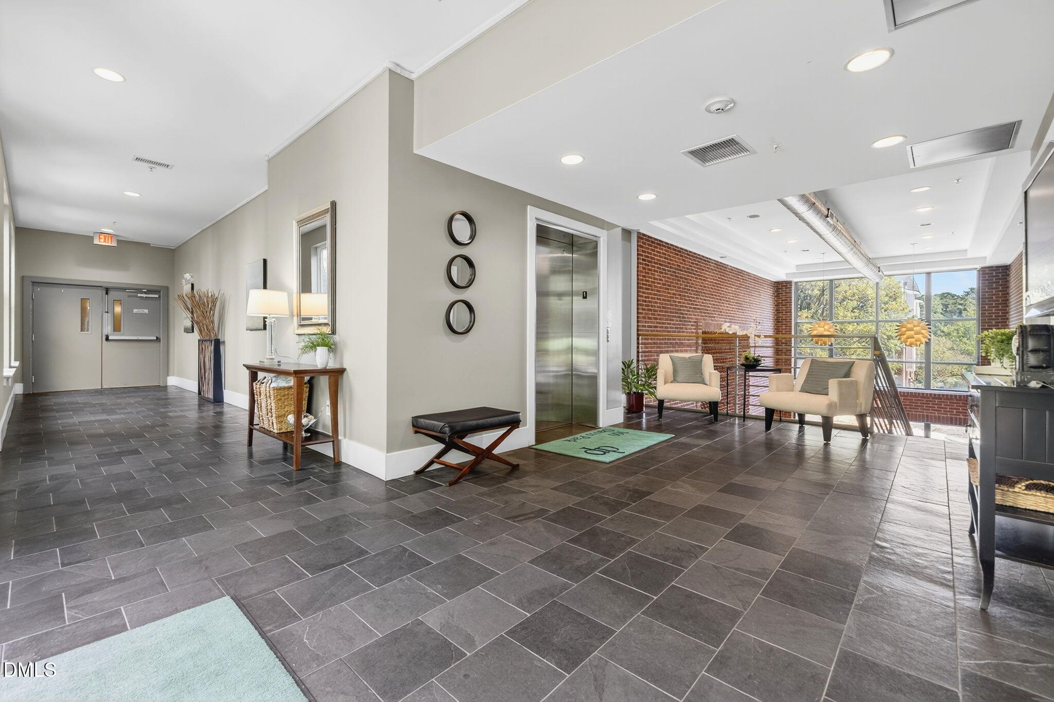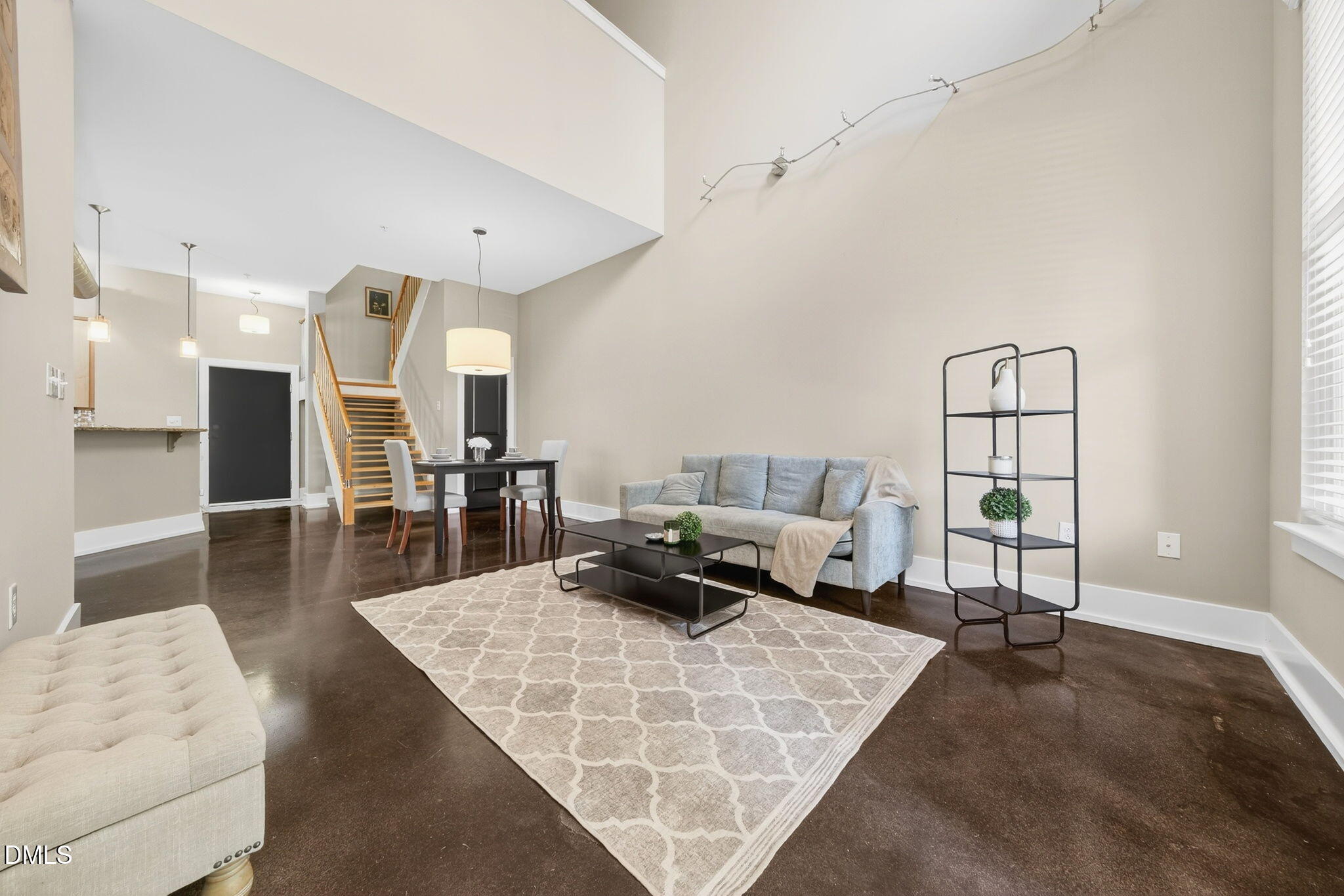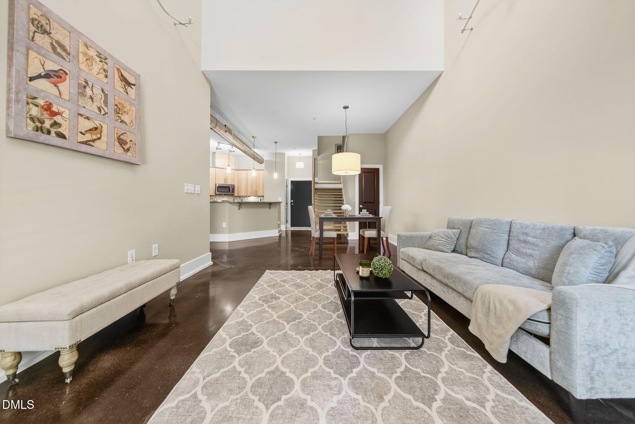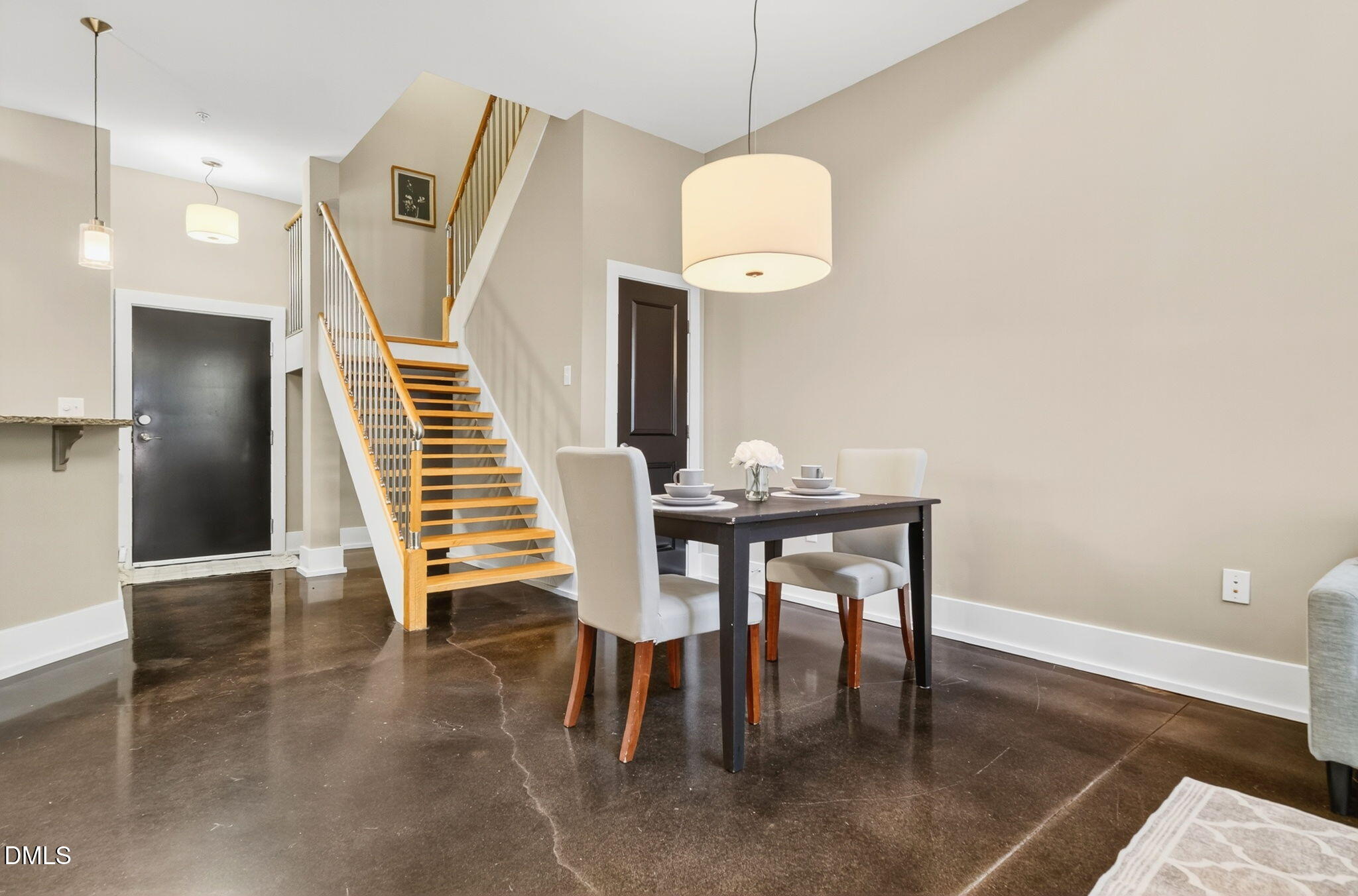 Live, work, and play in the very center of RTP--no long commute required! This rare and unique two-story, 2-bed/2-bath condo offers true industrial-contemporary style. It's one of the most convenient units in the building, with a private ground-floor entrance near the garage and mailroom, plus a second exterior entrance that opens to a large, expansive outdoor patio.
