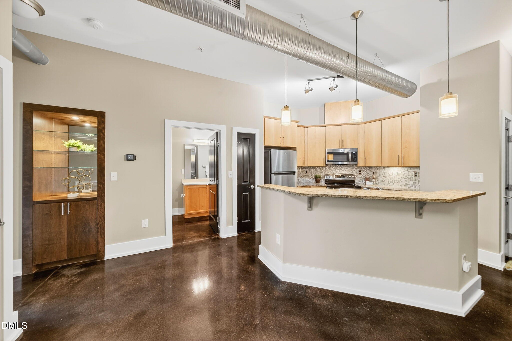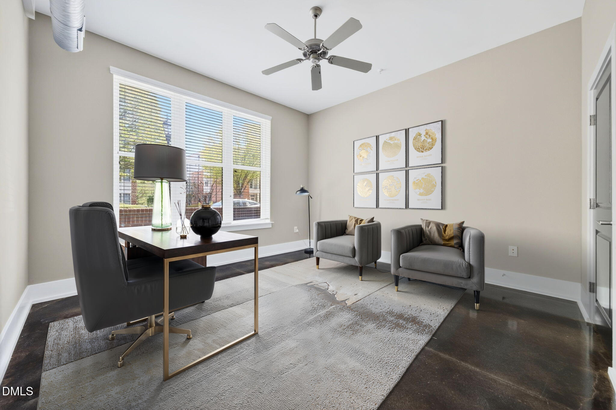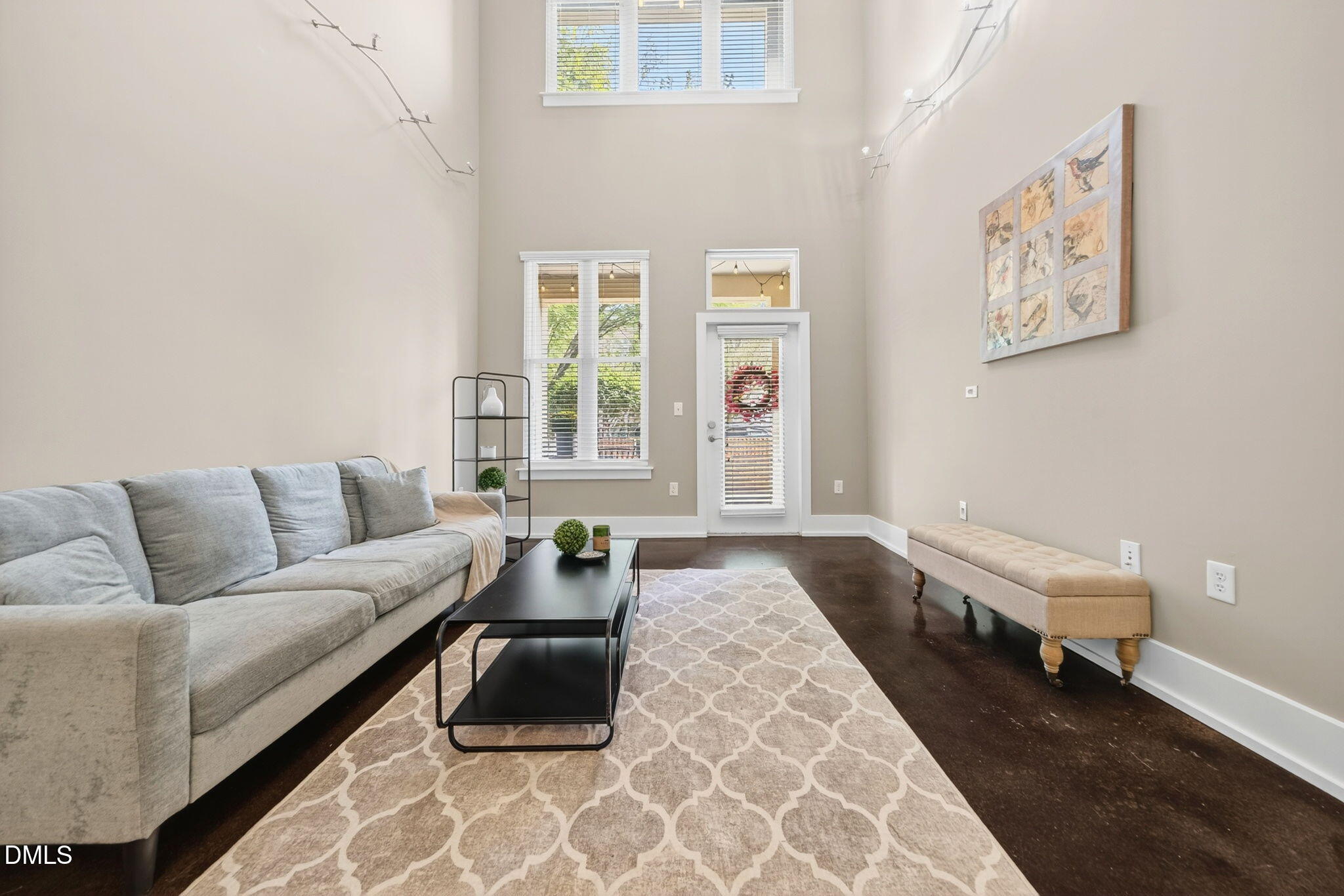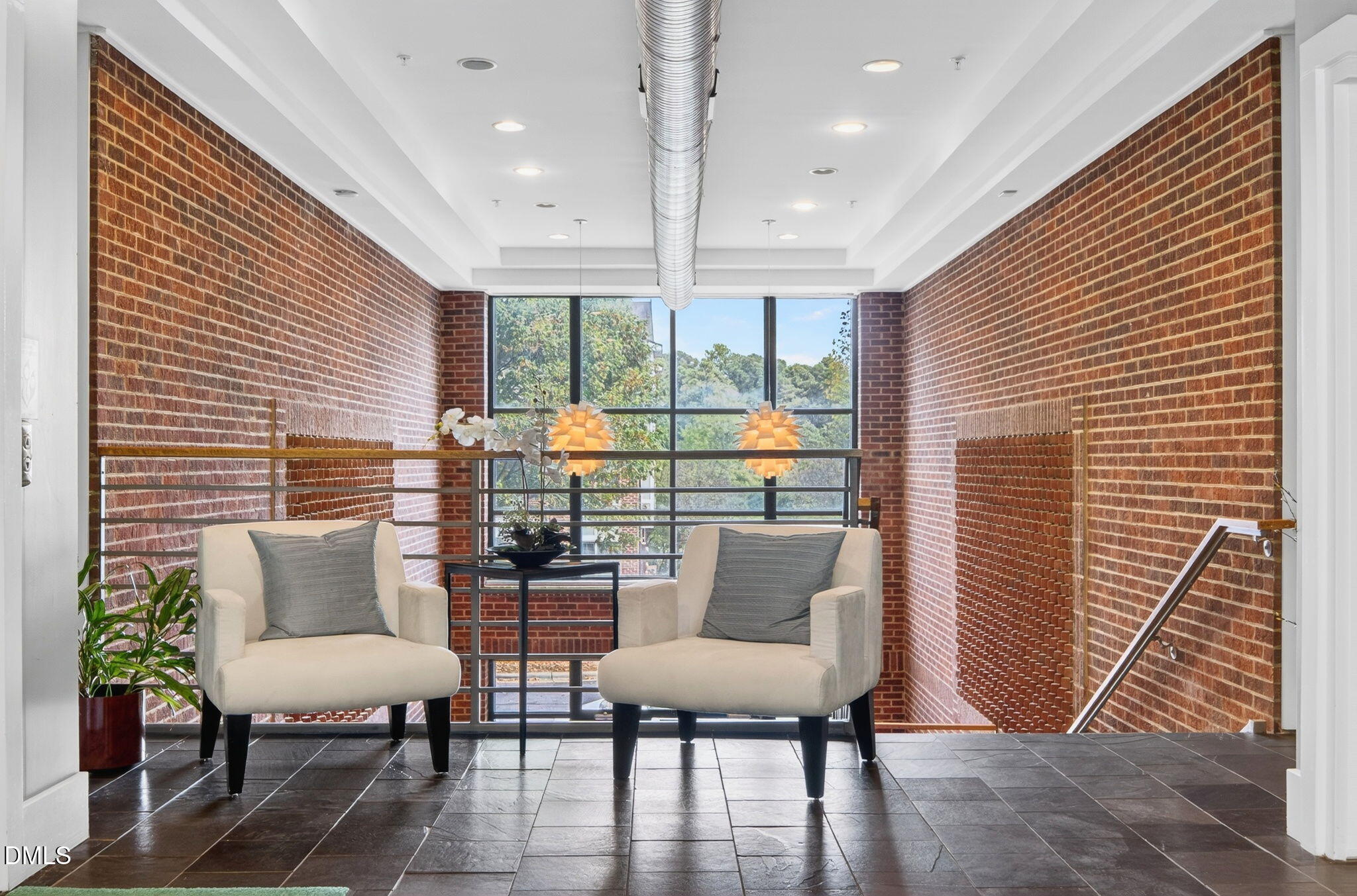 Live, work, and play in the very center of RTP--no long commute required! This rare and unique two-story, 2-bed/2-bath condo offers true industrial-contemporary style. It's one of the most convenient units in the building, with a private ground-floor entrance near the garage and mailroom, plus a second exterior entrance that opens to a large, expansive outdoor patio.
