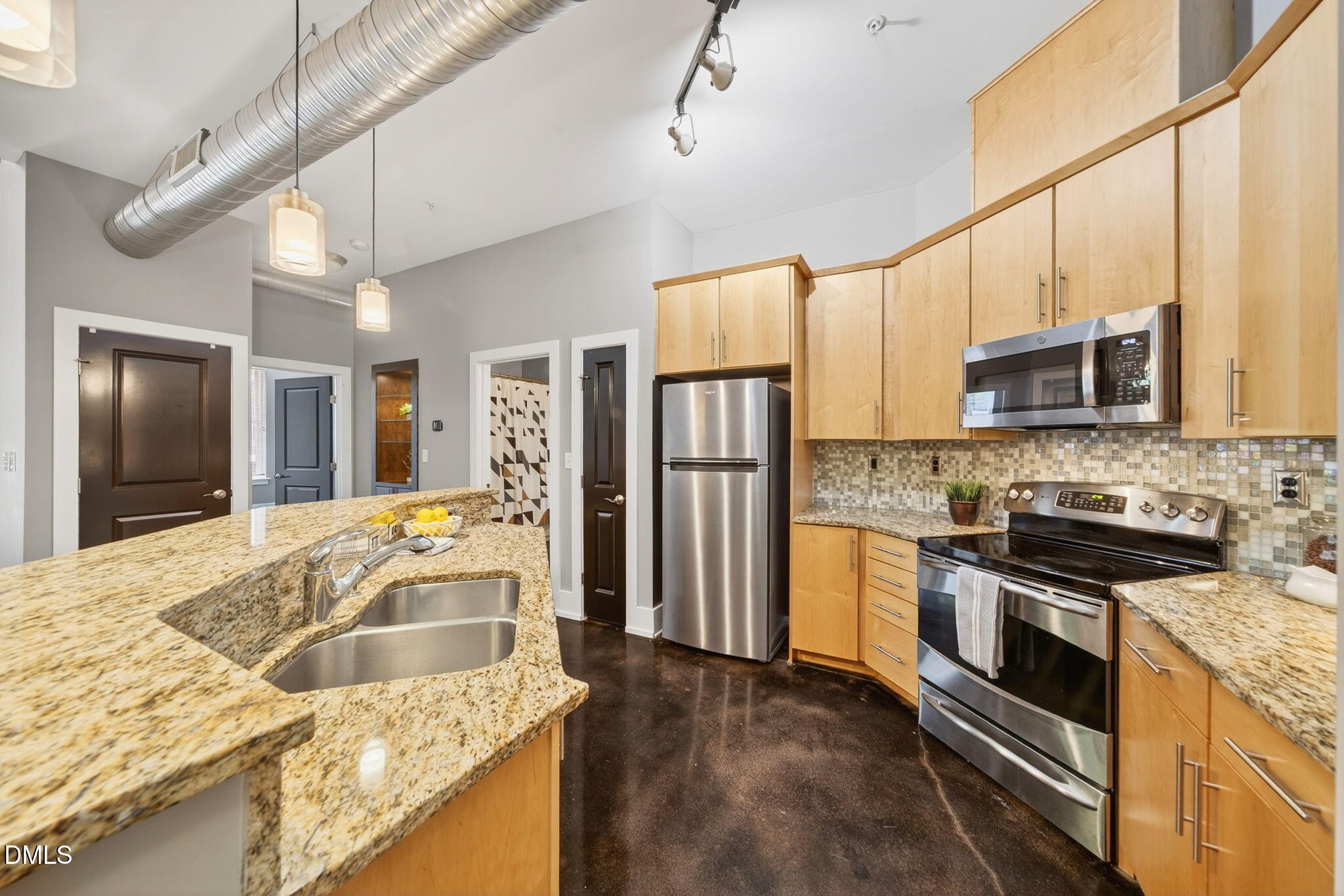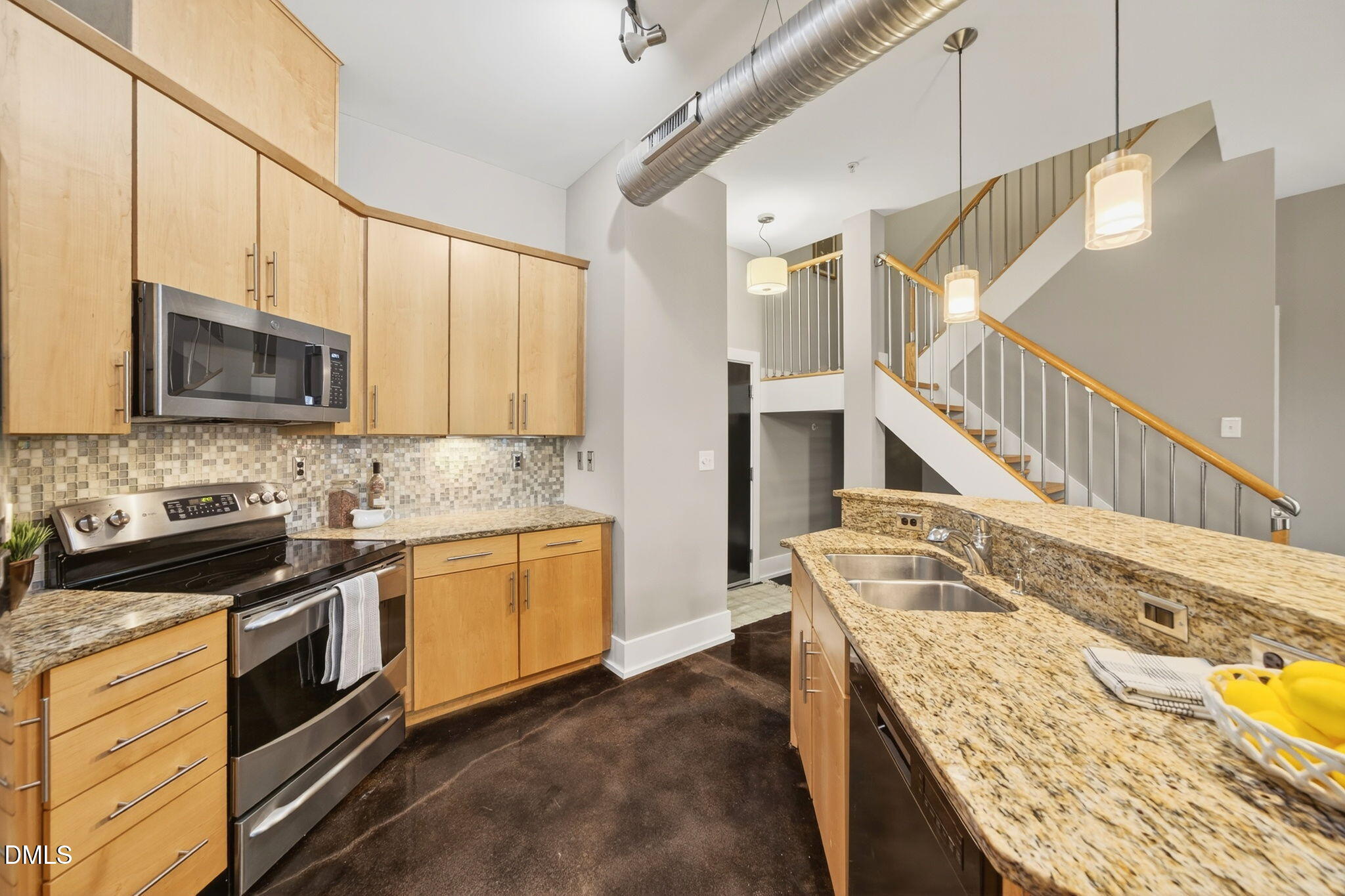 A deeded garage parking space and exterior storage unit provide convenience and security, and the community HOA pool offers easy leisure. HOA fees include water and trash. Don't miss this unique opportunity to own a two-story condo in the heart of RTP with two private entrances--industrial elegance meets unbeatable location!