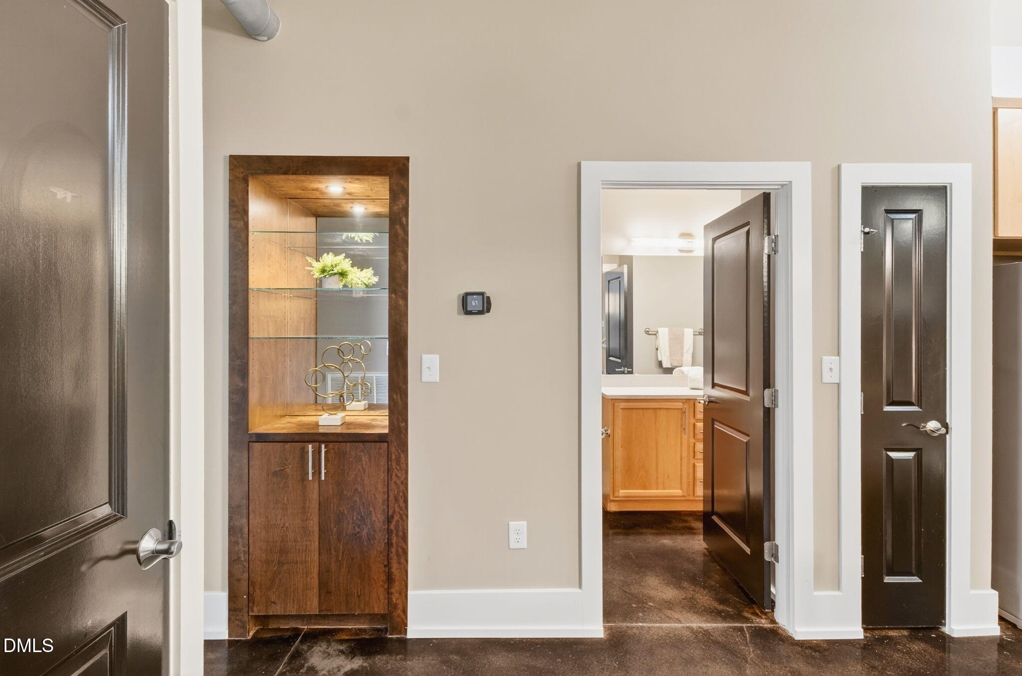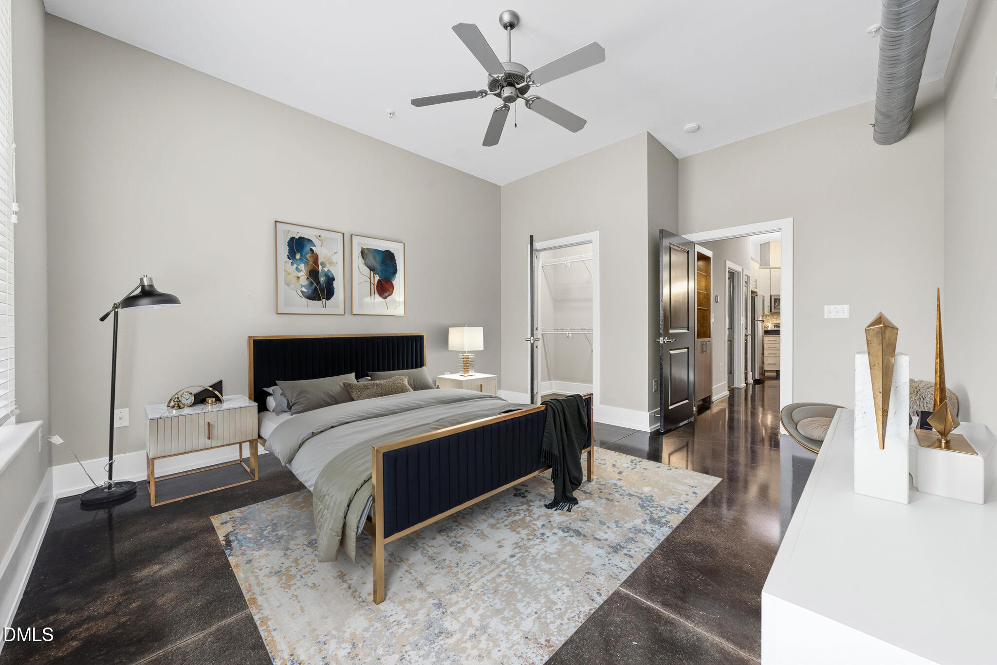 Inside, polished concrete floors, exposed HVAC ductwork, and sleek modern lighting create an urban-loft vibe. Sleek built-ins, designer custom closet shelving and upgraded cabinet pull-outs add everyday luxury and functionality, making excellent use of the space. The open main level flows effortlessly for entertaining and includes a bedroom and full bath that can double as a home office. Upstairs, you'll find a generous loft for hobbies or reading, a laundry room, and a large primary bedroom with a luxurious ensuite bath and custom closet. The upstairs balcony lets you start each day with a breath of fresh air.