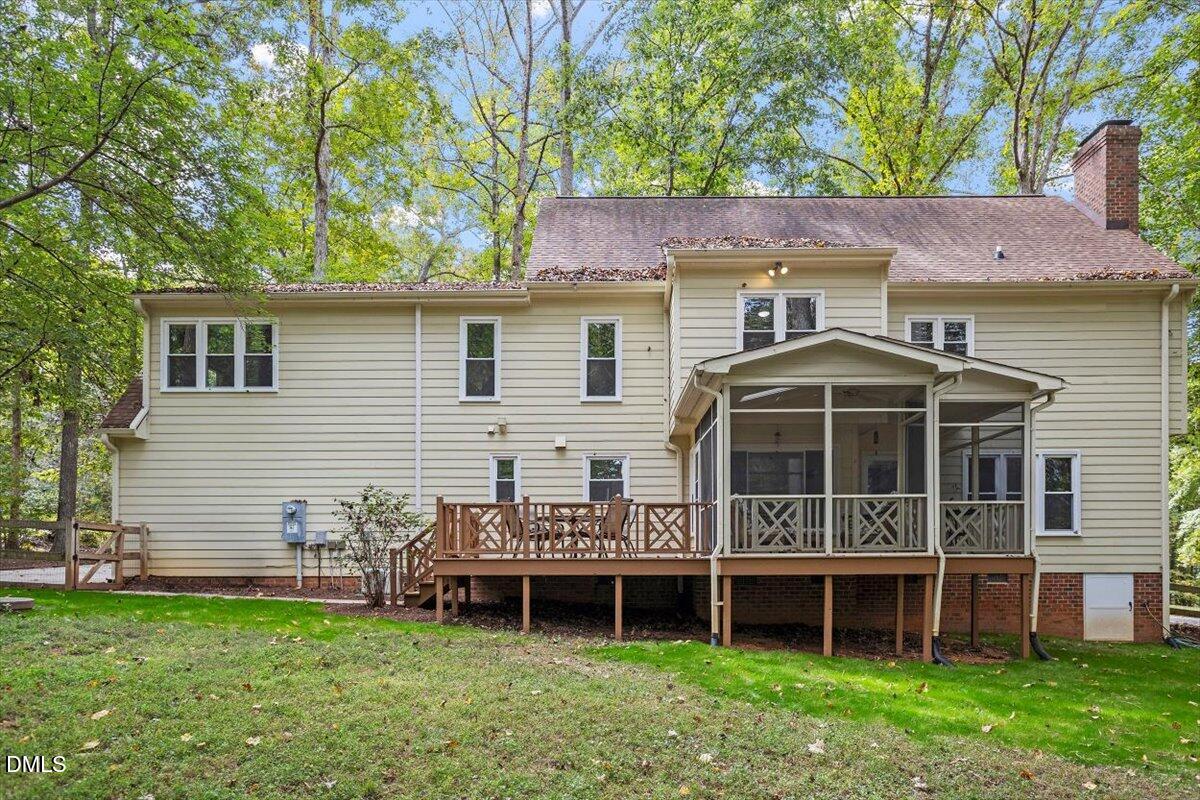 This spacious and versatile 4-bedroom, 2.5-bath home is packed with updates and extra space galore. With three additional bonus areas, there is room for everything, whether you need a home office, gym, media room, or playroom. The first floor features a flexible bonus room, a wood-burning fireplace in the living room, and an eat-in kitchen with granite countertops, stainless steel appliances, and a large breakfast area. The adjacent formal dining room is perfect for gatherings, and the living room opens to a screened porch and deck, making it ideal for entertaining. Upstairs, you will find four bedrooms plus a large family room. The third floor includes a partially finished attic space converted into an office or family room, complete with its own mini split for heating and cooling. This home has been thoughtfully maintained and improved with recent upgrades including a fully renovated primary bathroom completed three years ago, a brand new garage door and opener, a brand new well pump, new HVAC system, new windows, new water heater, updated recessed and wafer lighting, a new crawl space door, and a new vapor barrier. The septic system has also been recently serviced for added peace of mind. Sitting on just over an acre with a fenced backyard, this property offers both privacy and functionality. It is conveniently located near North Durham's restaurants, gyms, and shopping, and is under 30 minutes from Downtown Durham. You will enjoy the feel of rural living with the benefits of city access. This home truly has it all!