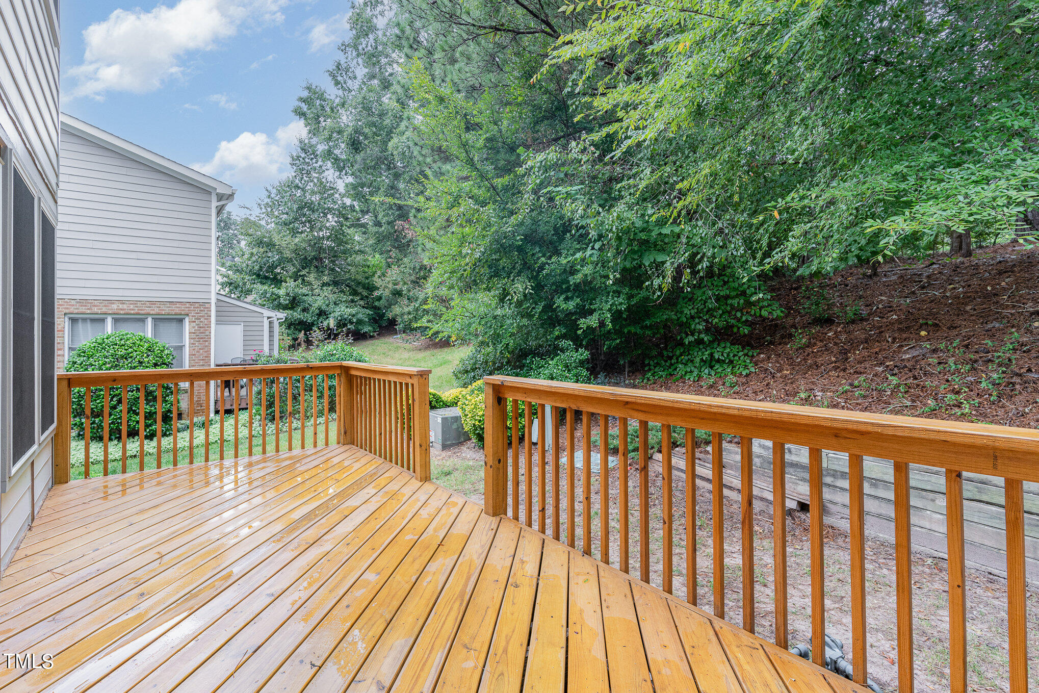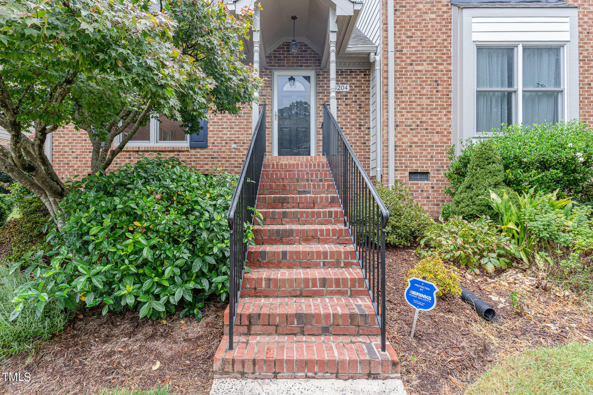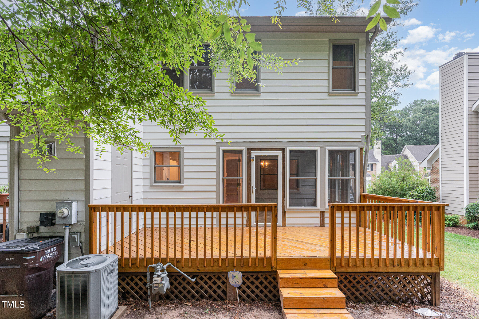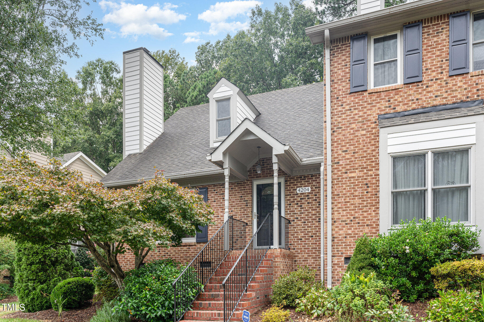 Welcome to this exquisite 2-bedroom, 2.5-bath end-unit townhome located in the sought-after Homeplace IV subdivision of Durham's Woodcroft neighborhood. This home boasts a stunning traditional brick exterior. Step inside to discover a beautifully maintained interior featuring hardwood floors throughout the first level, complemented by vaulted ceilings and an open-concept living and dining area perfect for entertaining. The updated kitchen and half bath on the main floor offer modern conveniences and style. Upstairs, you'll find a spacious primary bedroom retreat complete with an updated en-suite bath and a generous walk-in closet. An additional bedroom and full bathroom provide comfort and privacy for family or guests. The lofted hallway area upstairs is a versatile space ideal for a reading nook or home office. Enjoy year-round outdoor living with a unique 3-season porch that is carpeted and windowed, plus a large deck! This townhome backs up to the Woodcroft walking trails, which connect to the American Tobacco Campus, and is just minutes away from SouthPoint Mall and South Durham's vibrant shopping and entertainment options. Don't miss this rare opportunity to experience the best of townhome living with exceptional outdoor space in a highly desirable location.