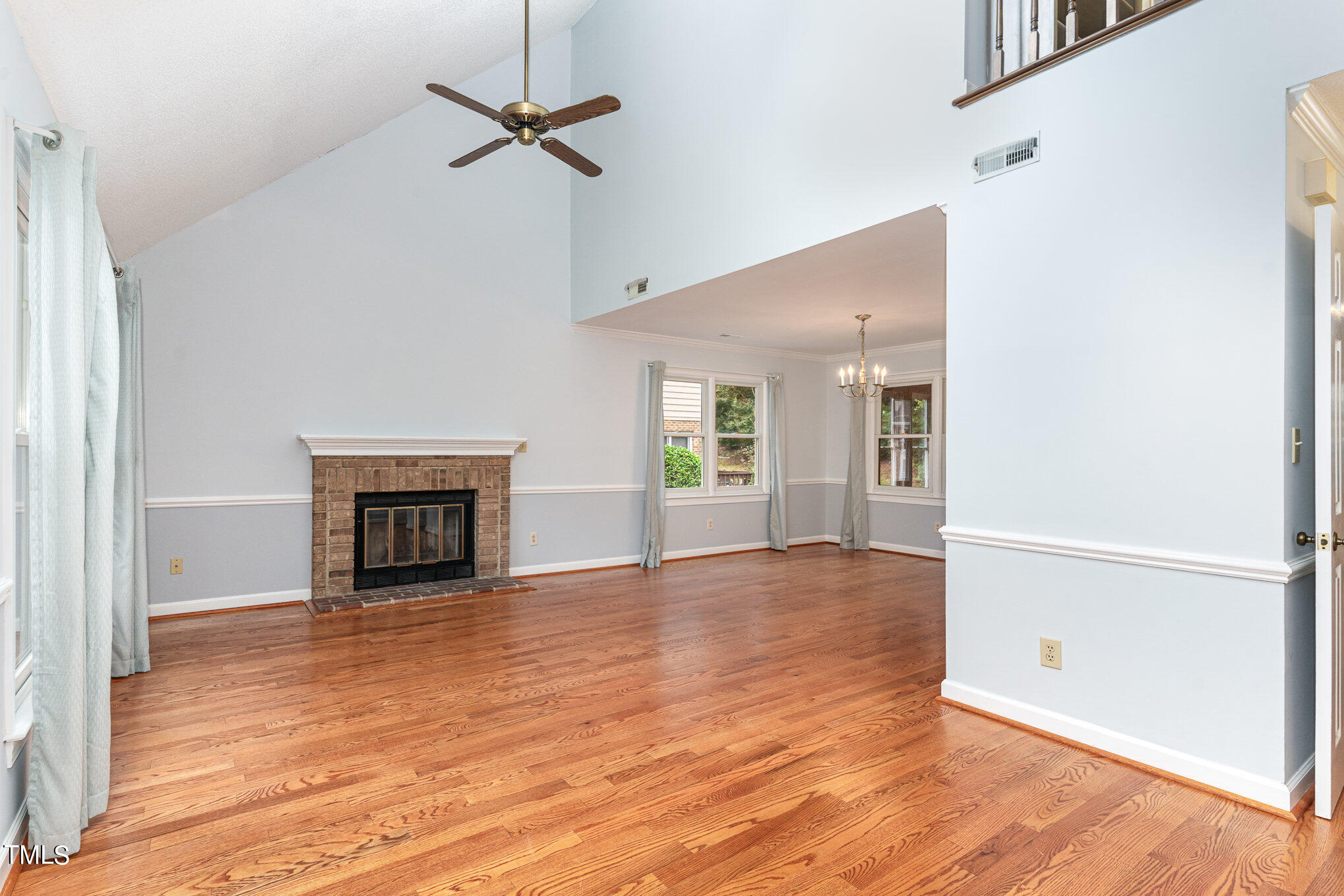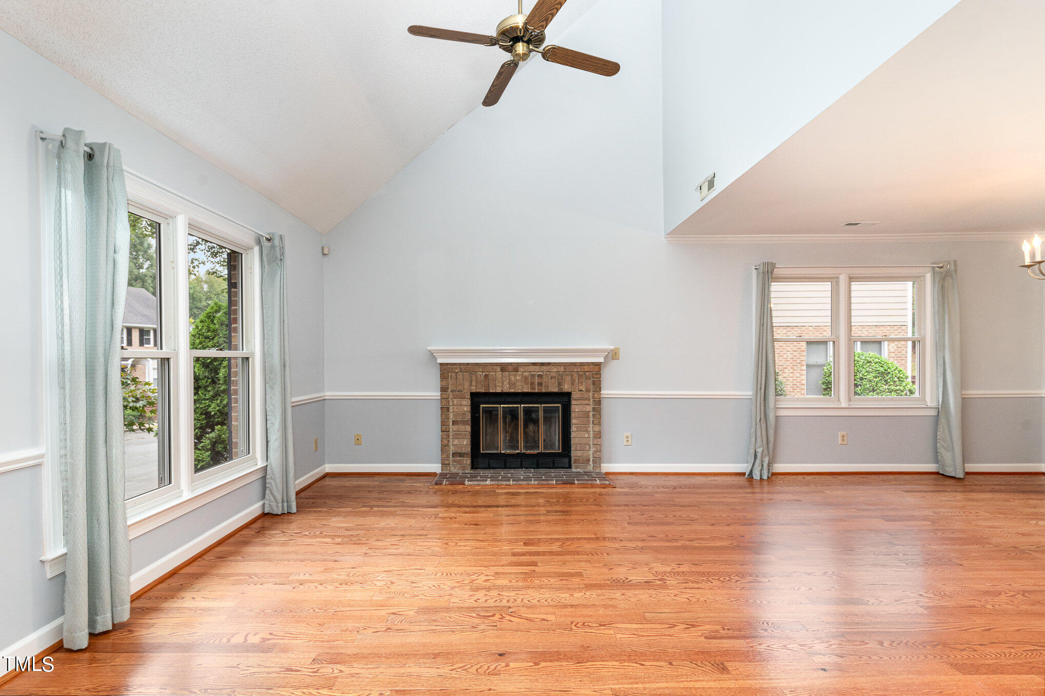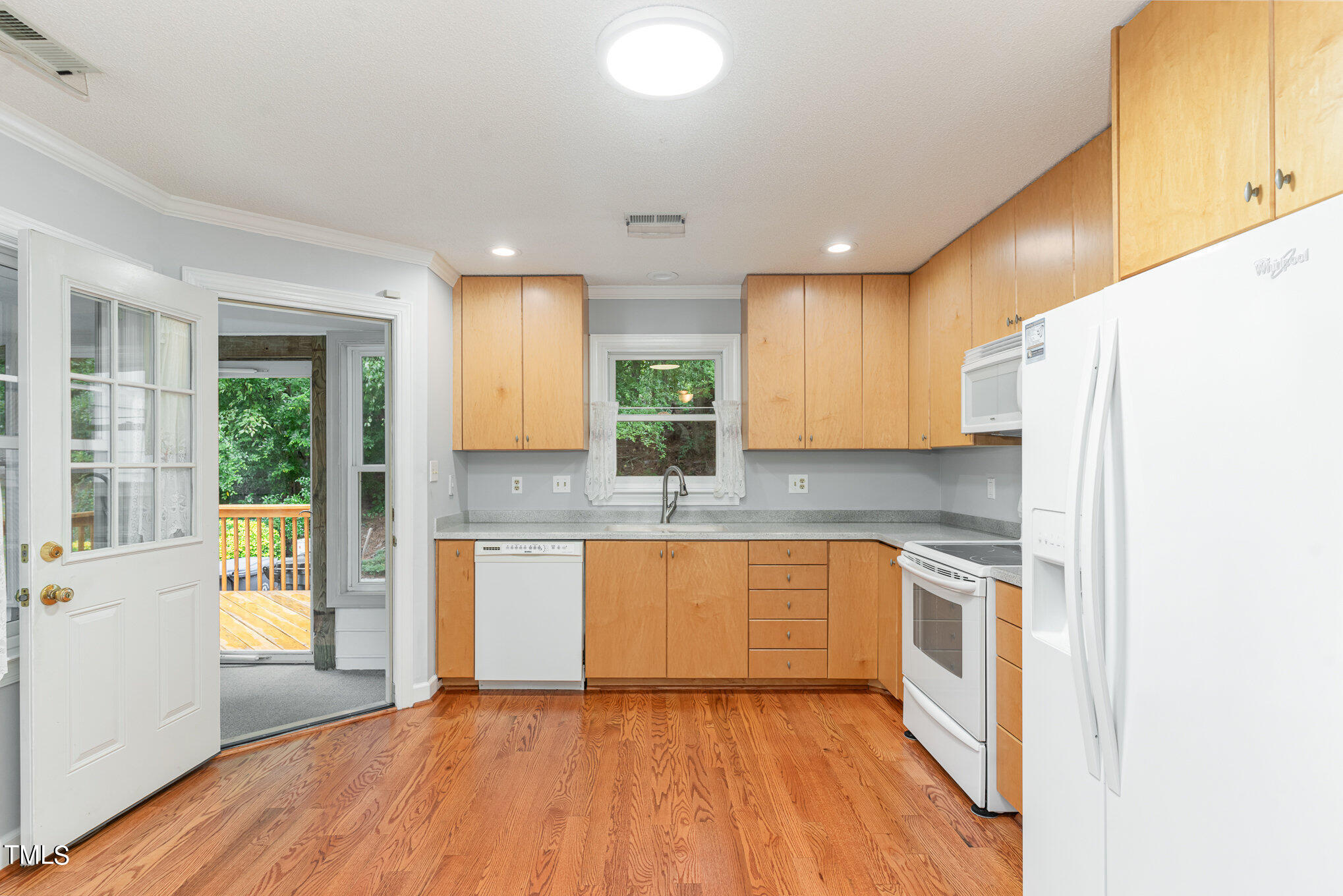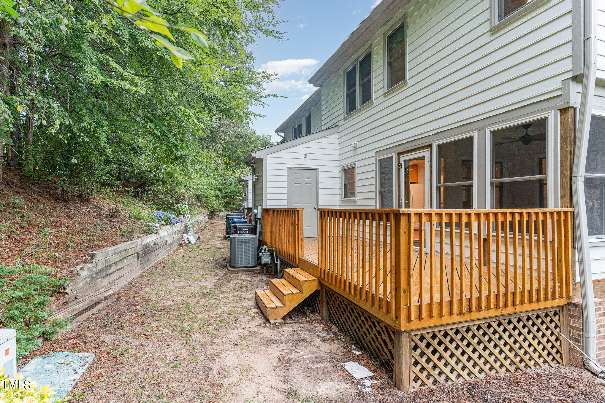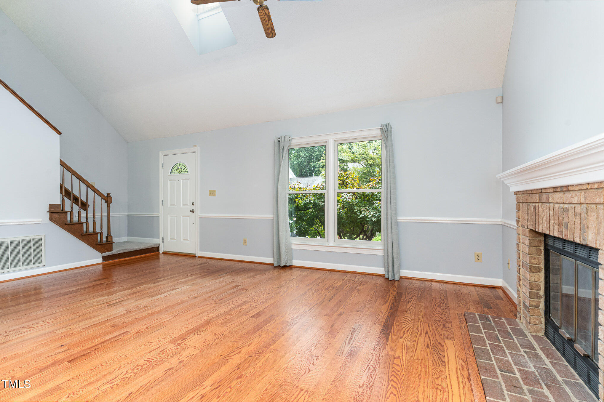 Welcome to this exquisite 2-bedroom, 2.5-bath end-unit townhome located in the sought-after Homeplace IV subdivision of Durham's Woodcroft neighborhood. This home boasts a stunning traditional brick exterior. Step inside to discover a beautifully maintained interior featuring hardwood floors throughout the first level, complemented by vaulted ceilings and an open-concept living and dining area perfect for entertaining. The updated kitchen and half bath on the main floor offer modern conveniences and style. Upstairs, you'll find a spacious primary bedroom retreat complete with an updated en-suite bath and a generous walk-in closet. An additional bedroom and full bathroom provide comfort and privacy for family or guests. The lofted hallway area upstairs is a versatile space ideal for a reading nook or home office. Enjoy year-round outdoor living with a unique 3-season porch that is carpeted and windowed, plus a large deck! This townhome backs up to the Woodcroft walking trails, which connect to the American Tobacco Campus, and is just minutes away from SouthPoint Mall and South Durham's vibrant shopping and entertainment options. Don't miss this rare opportunity to experience the best of townhome living with exceptional outdoor space in a highly desirable location.