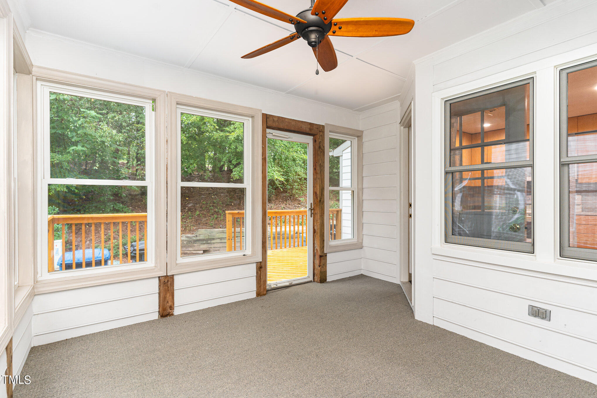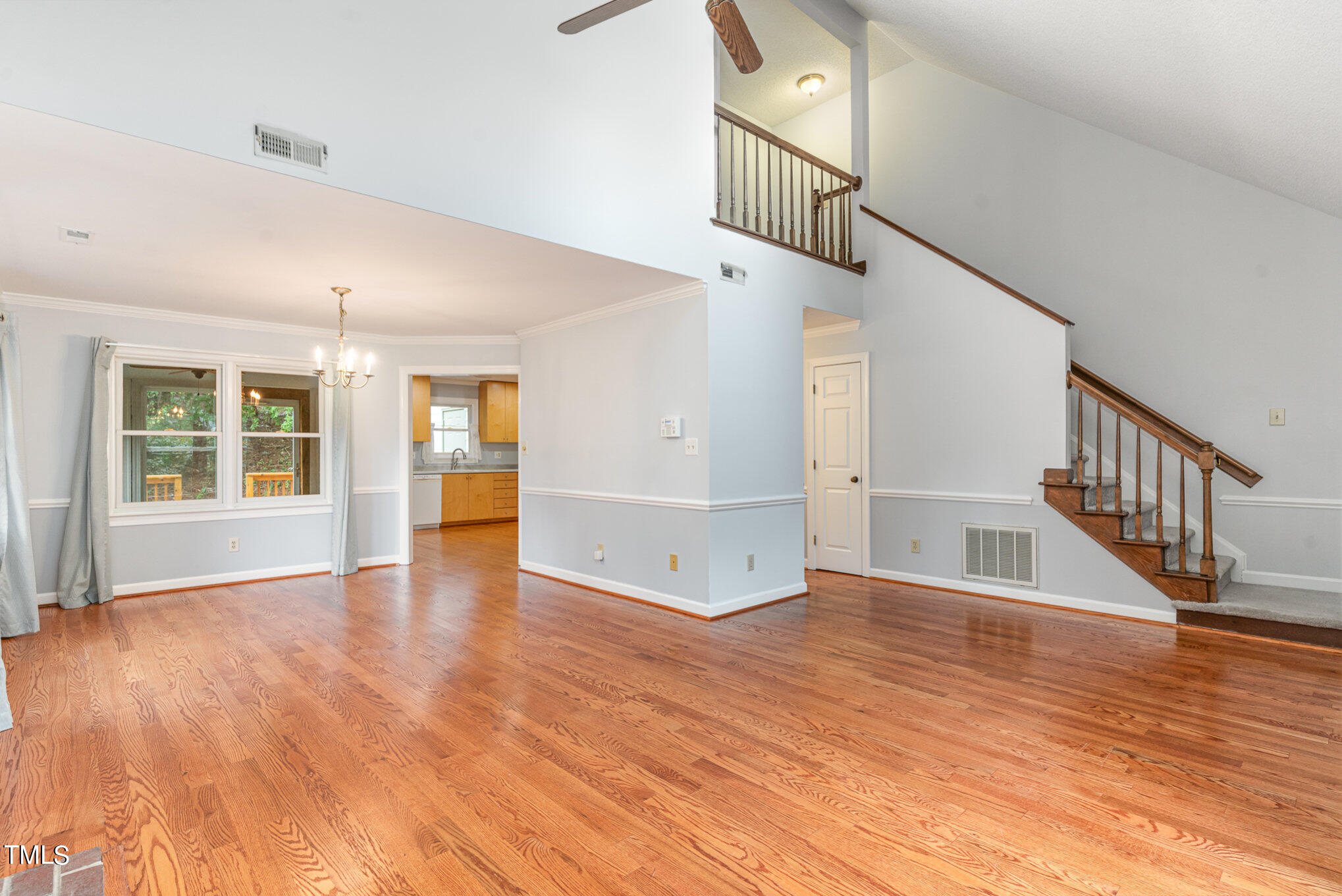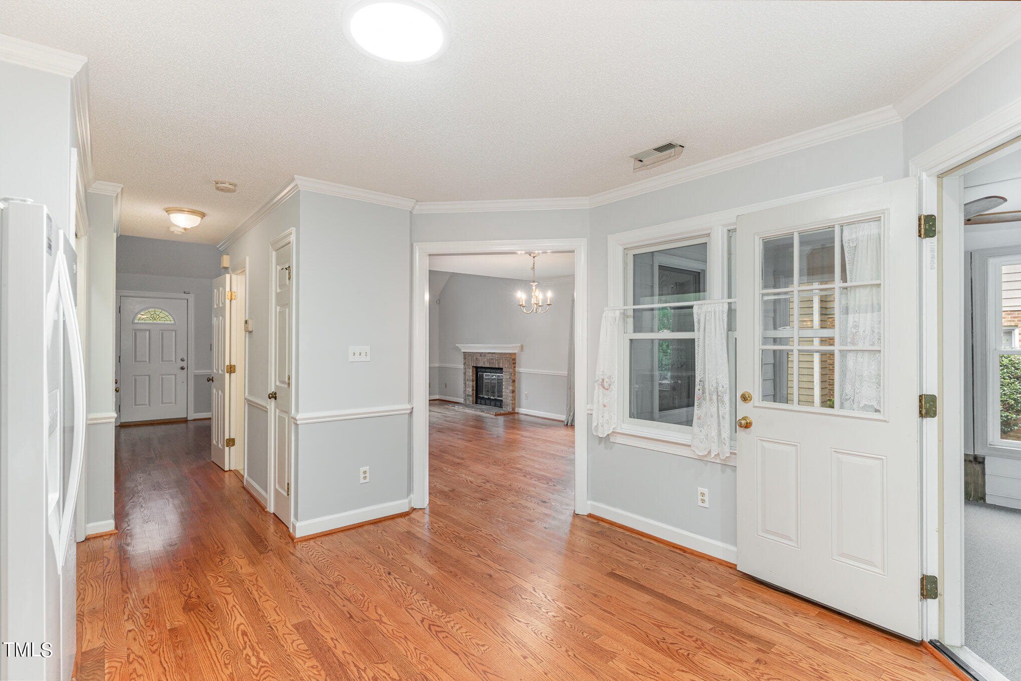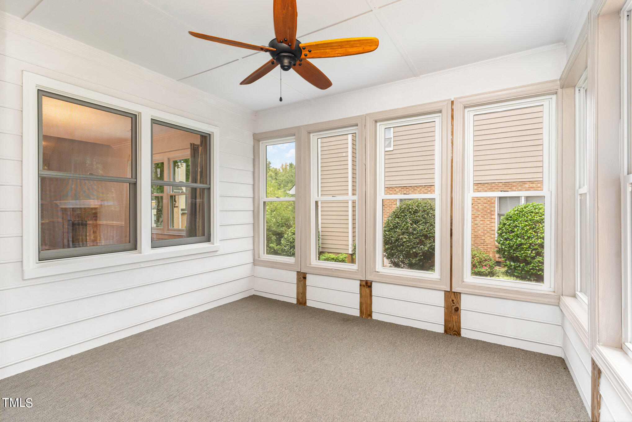 Welcome to this exquisite 2-bedroom, 2.5-bath end-unit townhome located in the sought-after Homeplace IV subdivision of Durham's Woodcroft neighborhood. This home boasts a stunning traditional brick exterior. Step inside to discover a beautifully maintained interior featuring hardwood floors throughout the first level, complemented by vaulted ceilings and an open-concept living and dining area perfect for entertaining. The updated kitchen and half bath on the main floor offer modern conveniences and style. Upstairs, you'll find a spacious primary bedroom retreat complete with an updated en-suite bath and a generous walk-in closet. An additional bedroom and full bathroom provide comfort and privacy for family or guests. The lofted hallway area upstairs is a versatile space ideal for a reading nook or home office. Enjoy year-round outdoor living with a unique 3-season porch that is carpeted and windowed, plus a large deck! This townhome backs up to the Woodcroft walking trails, which connect to the American Tobacco Campus, and is just minutes away from SouthPoint Mall and South Durham's vibrant shopping and entertainment options. Don't miss this rare opportunity to experience the best of townhome living with exceptional outdoor space in a highly desirable location.