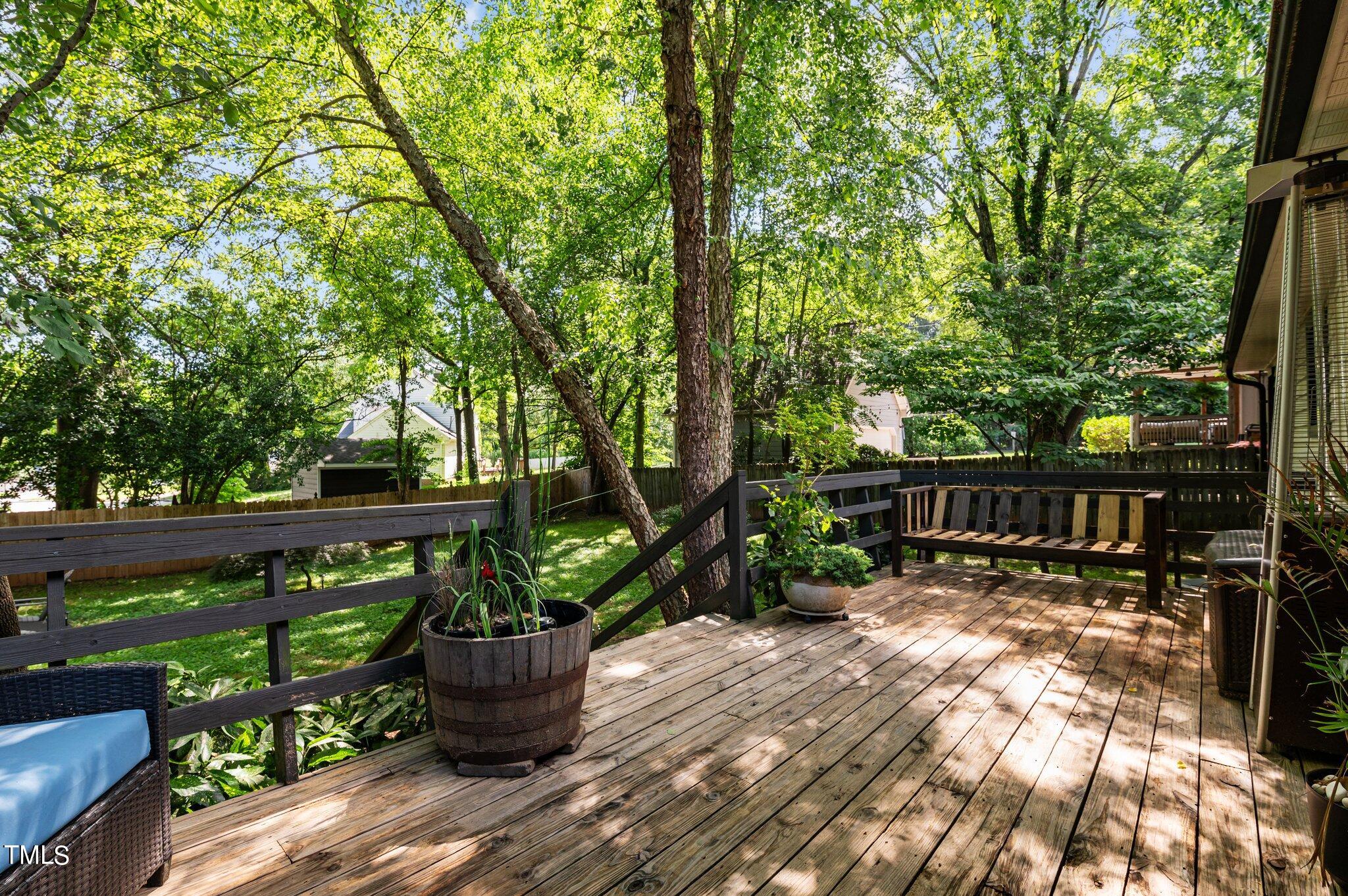 Welcome to your dream home in the highly sought-after Ridgeloch subdivision! This beautifully updated 3-bedroom, 2-bathroom ranch home offers the perfect blend of modern amenities and classic charm. Conveniently located near both North Hills and Crabtree and walking distance to Shelley Lake Park, you'll enjoy easy access to shopping, dining, and recreation, all with no HOA fees . Enjoy peace of mind with new windows (2024), a new roof (2022), and new stainless steel appliances (2024). The home features a one-car garage, brand-new wet bar, fresh paint, and luxury vinyl flooring, adding a touch of elegance and style. The spacious, fenced backyard boasts a large deck and a fire pit, perfect for entertaining and relaxing. With plenty of natural light streaming in, every room feels open and inviting. Don't miss out on this amazing opportunity to own a move-in ready home in one of Raleigh's premier neighborhoods.