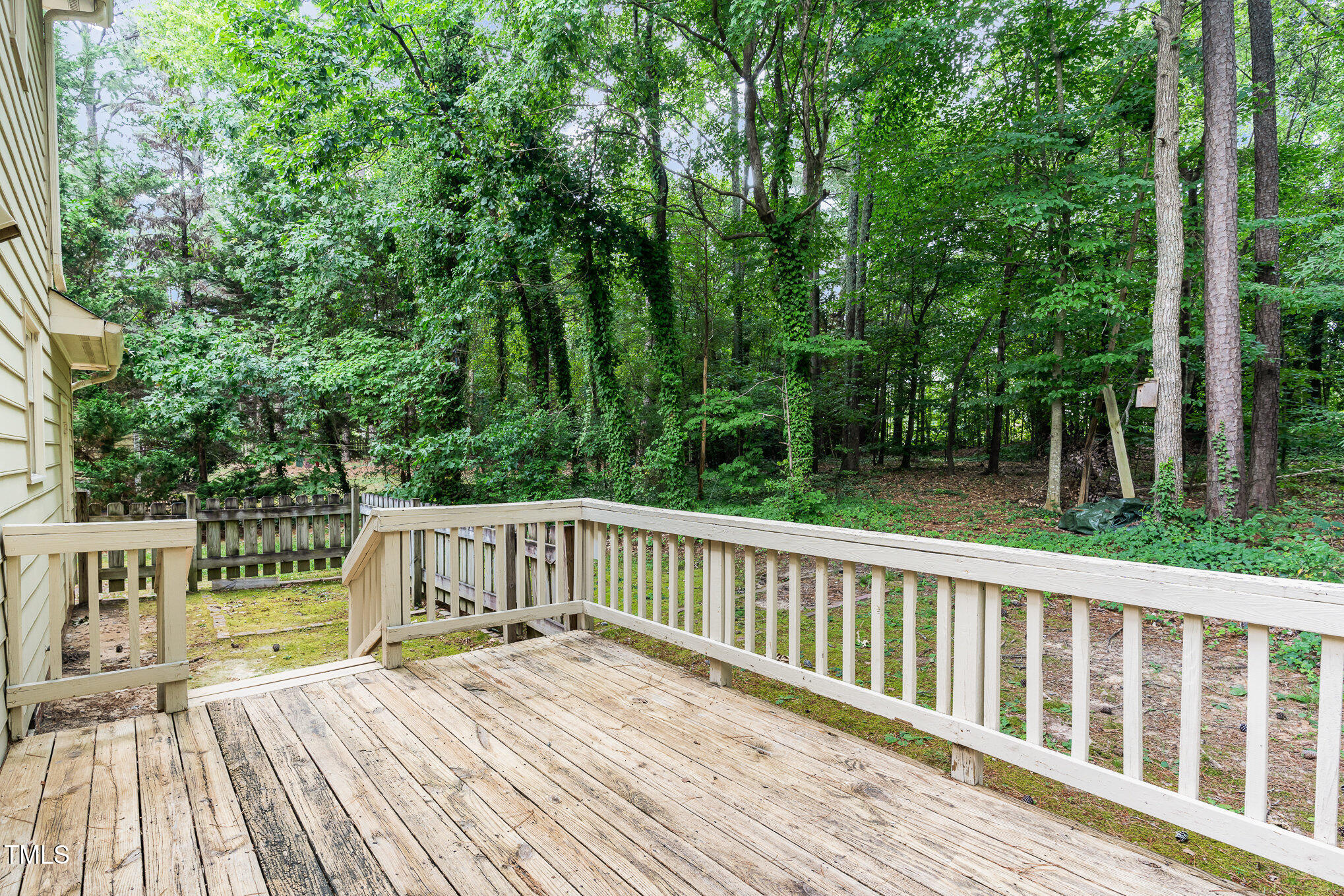 Nice Woodcroft home with rear private and good floor plan. Large living & dining room combination plus separate breakfast room, kitchen has white-painted cabinets plus stainless appliances, three bedrooms & 2 full baths upstairs. Covered front porch plus rear deck. Home has been a rental for years and seller is motivated to sell,