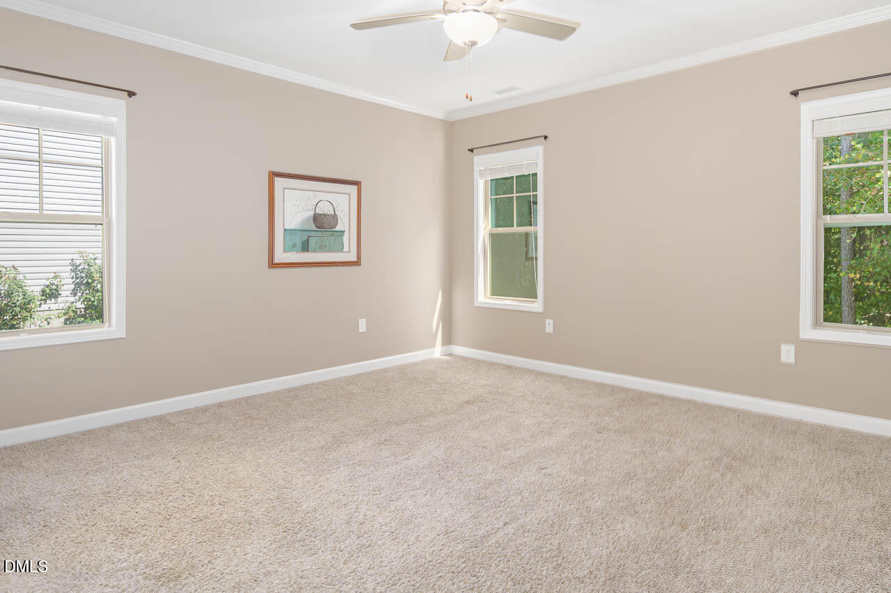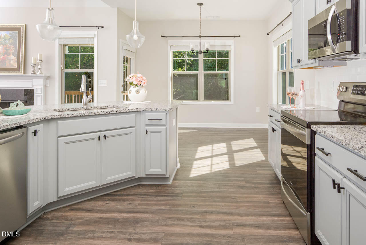 Fall in love with this impeccably maintained home that truly shines! The open floor plan features a soaring foyer and family room filled with natural light. Enjoy elegant dining in the gorgeous room with a coffered ceiling. The chef's kitchen boasts stainless steel appliances, granite countertops, tile backsplash, breakfast bar, pantry, and abundant cabinet space, opening to a spacious family room with a natural gas-log fireplace and access to the covered porch. The first-floor primary suite offers comfort and convenience with nearby laundry. Upstairs features two oversized bedrooms and two full baths, and a large bonus room--perfect for work or play. Covered front and back porches, extra-wide garage, and numerous upgrades throughout complete this exceptional home!