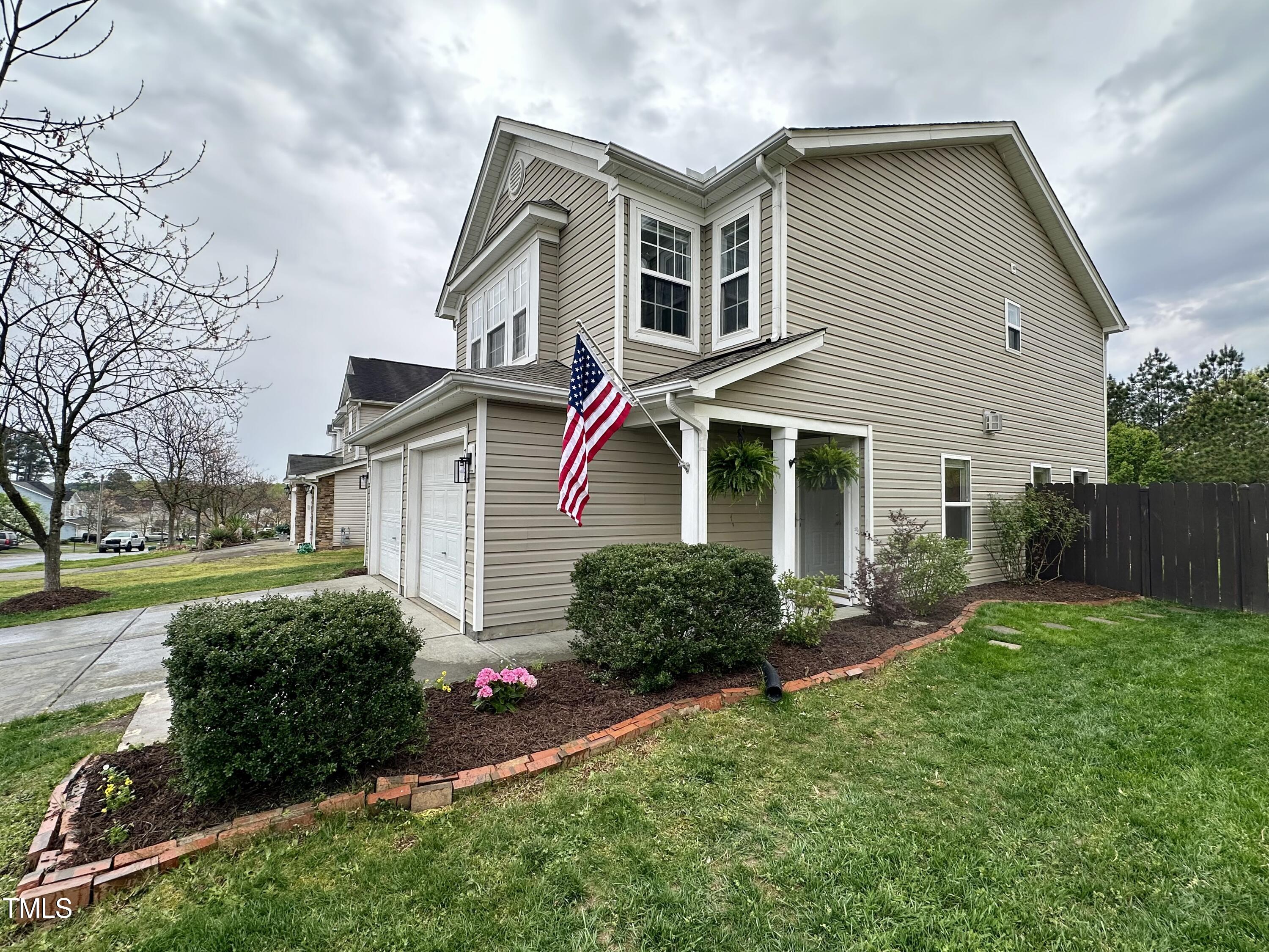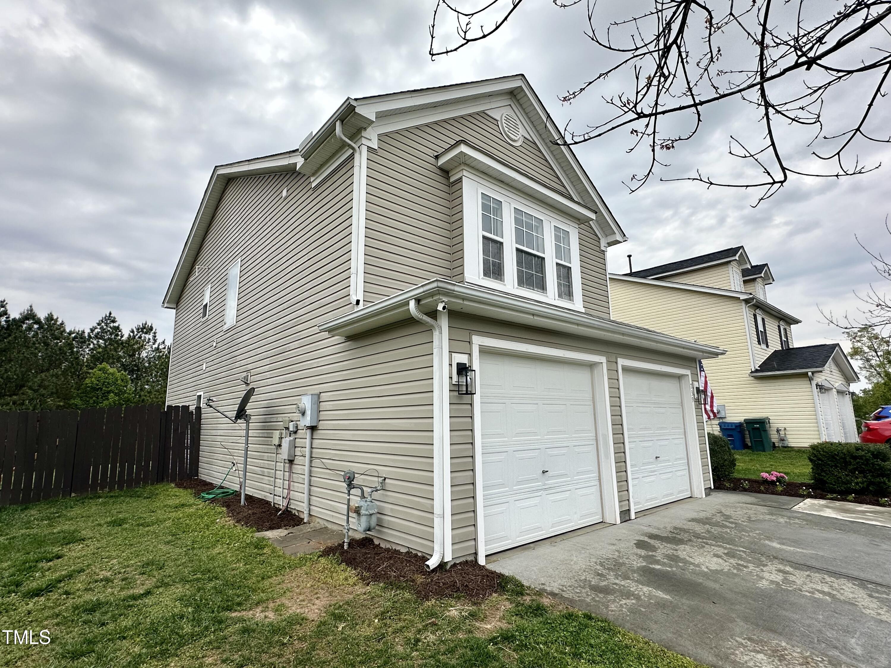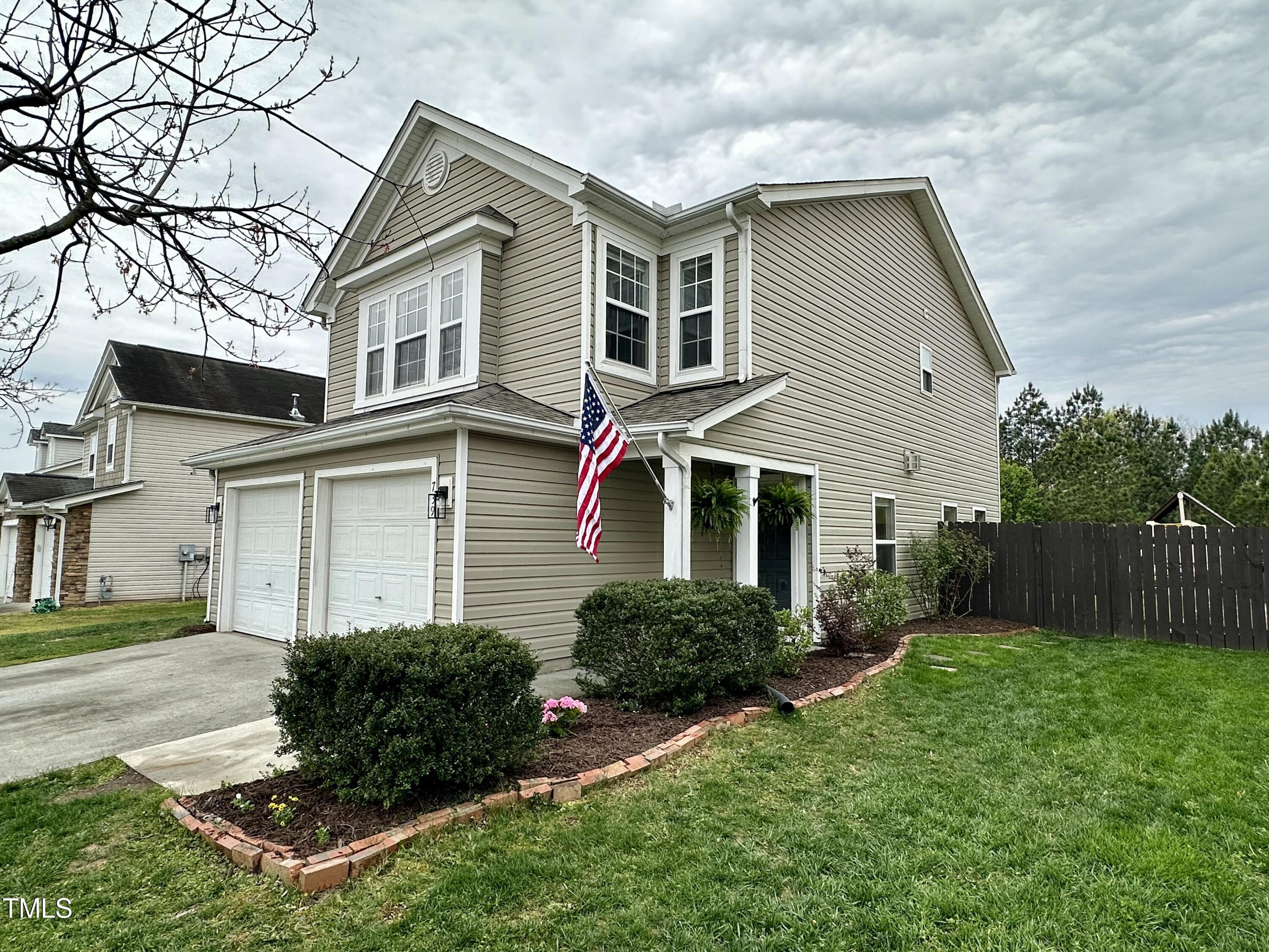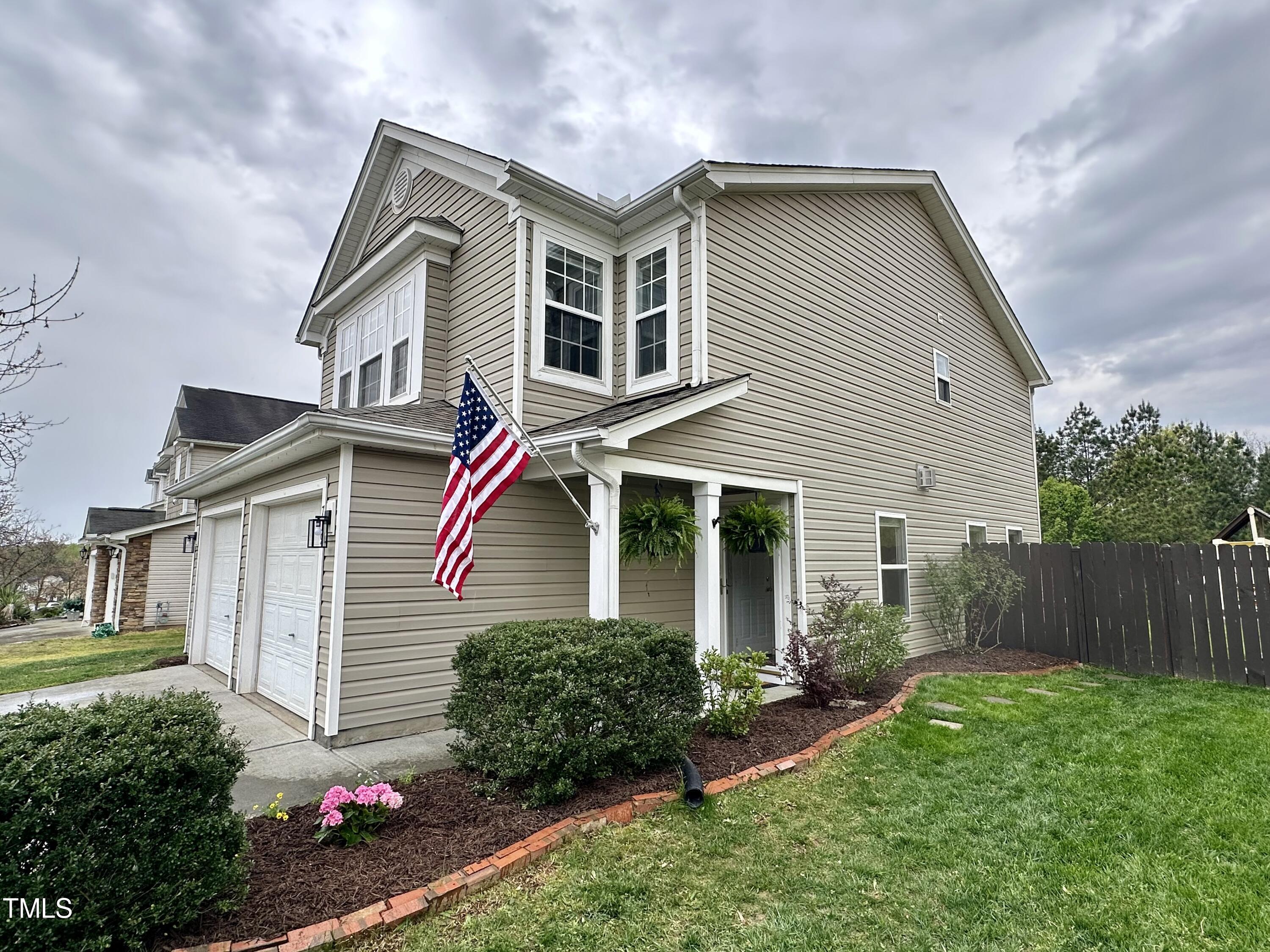 Gorgeous home on a quarter acre privacy fenced lot overlooking a wooded HOA buffer. All the work has been done for you, including a new roof (2024), newer HVAC (2020) , new carpet, new light fixtures and fresh paint. Large kitchen features new granite counters, white cabinets, stainless steel appliances and recessed lighting. There is a second pantry closet that leads to additional storage under the stairs. Open floor plan highlighted by a gas fireplace in the living room. Lots of natural light throughout. Exit to patio through a newer Pella sliding glass door. Upstairs, you'll find a large primary bedroom with a tray ceiling, large walk-in, and a large soaking tub & shower. Nicely sized secondary bedrooms with ceiling fans. Large laundry room and washer & dryer convey. The carpet upstairs was just replaced. Oversized two car garage features a 240v outlet suitable for a car charger, two ceiling fans, recessed lighting, built-in shelving and a surge protector. The great backyard features a six foot high privacy fence, a large wired shed, a large play set, a fire pit and a garden area. This home has it all. Great location convenient to downtown Durham and RTP.