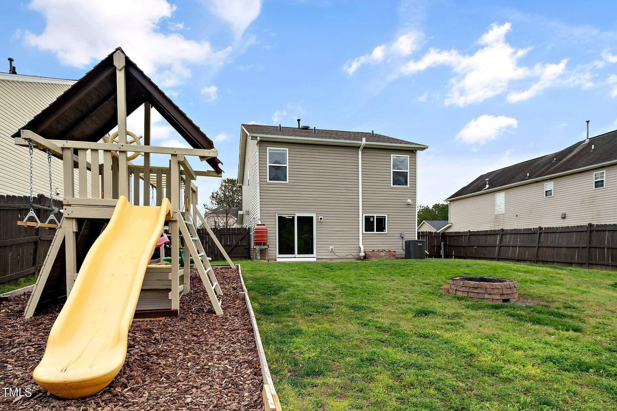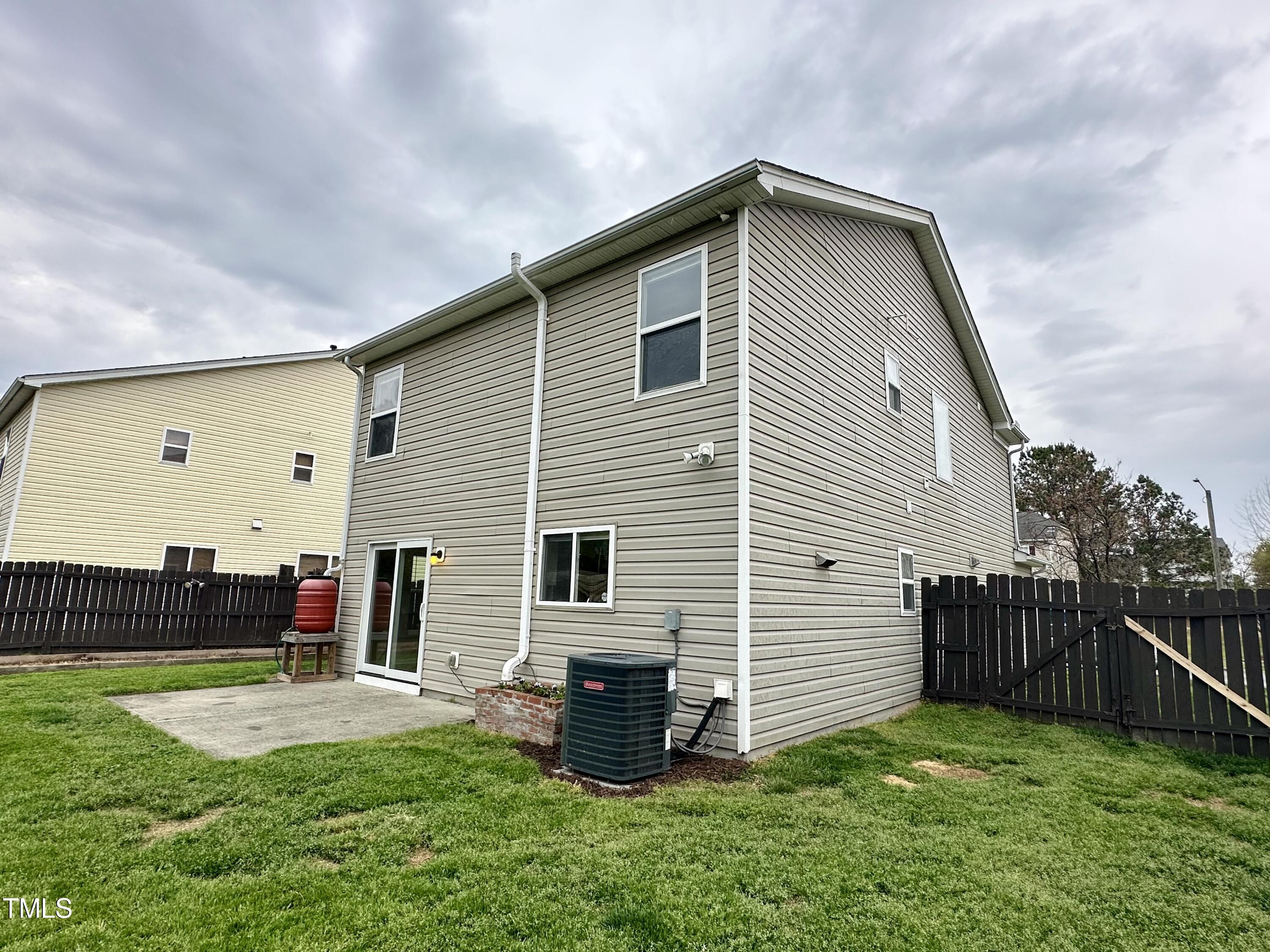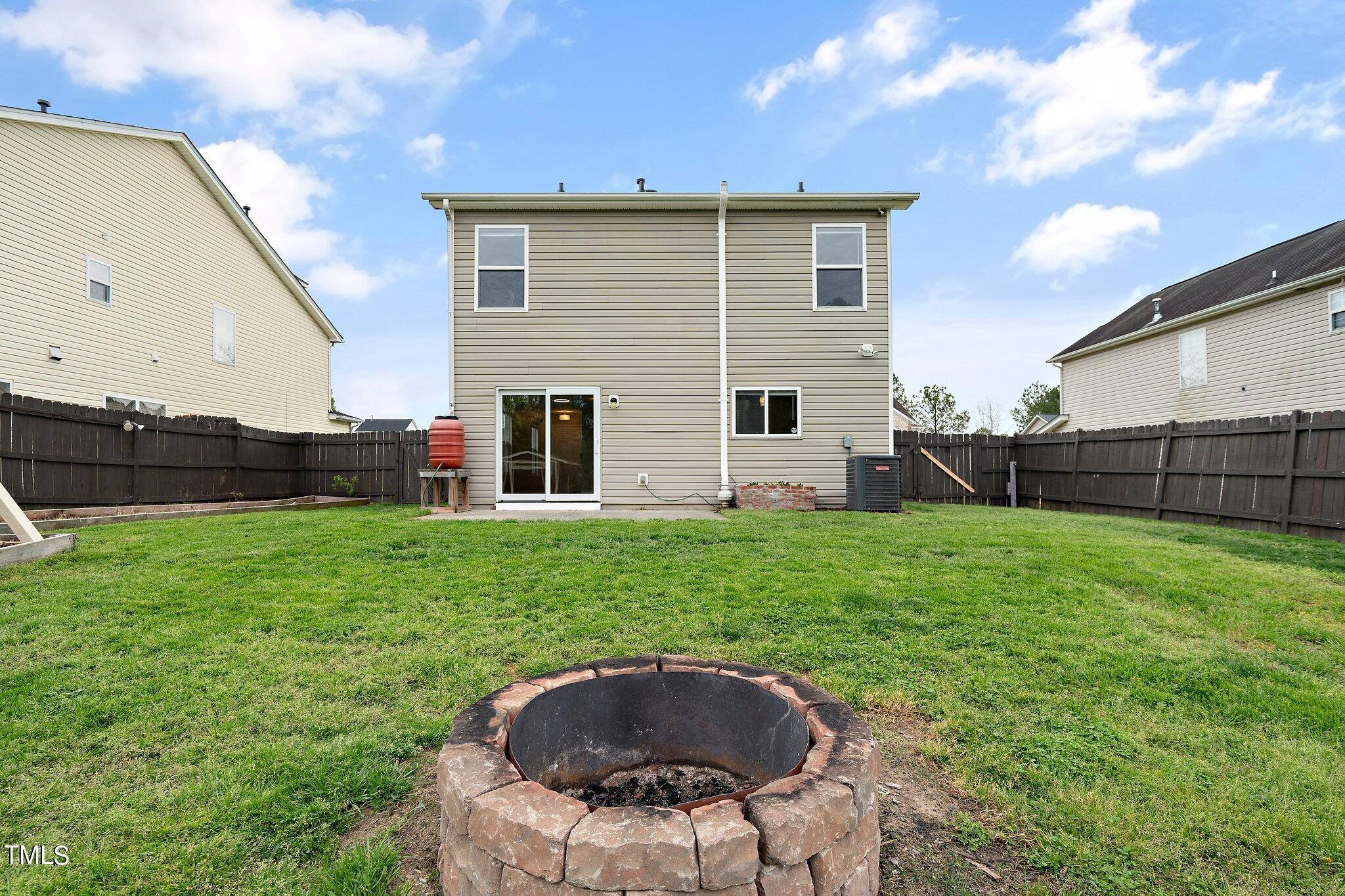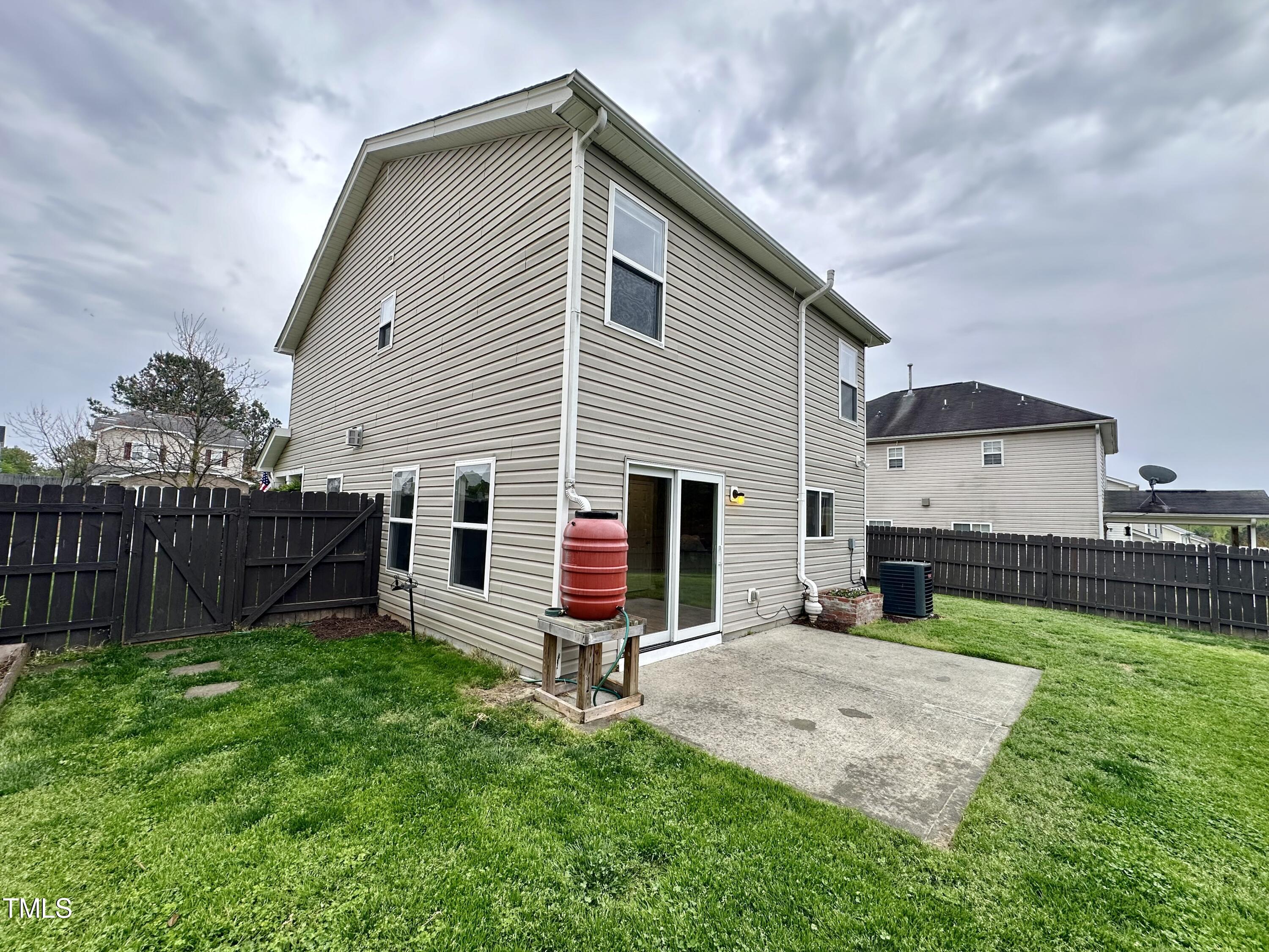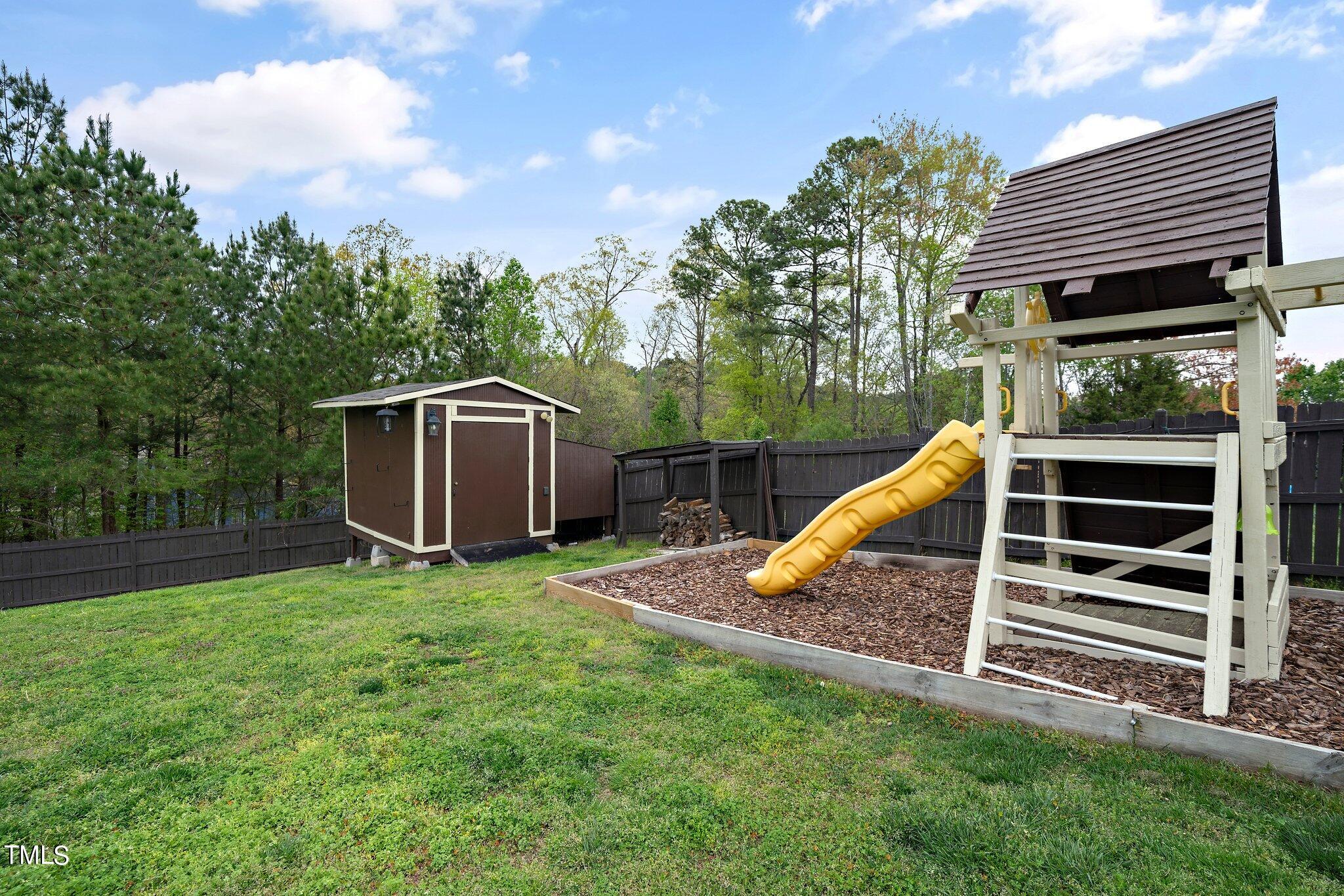 Gorgeous home on a quarter acre privacy fenced lot overlooking a wooded HOA buffer. All the work has been done for you, including a new roof (2024), newer HVAC (2020) , new carpet, new light fixtures and fresh paint. Large kitchen features new granite counters, white cabinets, stainless steel appliances and recessed lighting. There is a second pantry closet that leads to additional storage under the stairs. Open floor plan highlighted by a gas fireplace in the living room. Lots of natural light throughout. Exit to patio through a newer Pella sliding glass door. Upstairs, you'll find a large primary bedroom with a tray ceiling, large walk-in, and a large soaking tub & shower. Nicely sized secondary bedrooms with ceiling fans. Large laundry room and washer & dryer convey. The carpet upstairs was just replaced. Oversized two car garage features a 240v outlet suitable for a car charger, two ceiling fans, recessed lighting, built-in shelving and a surge protector. The great backyard features a six foot high privacy fence, a large wired shed, a large play set, a fire pit and a garden area. This home has it all. Great location convenient to downtown Durham and RTP.